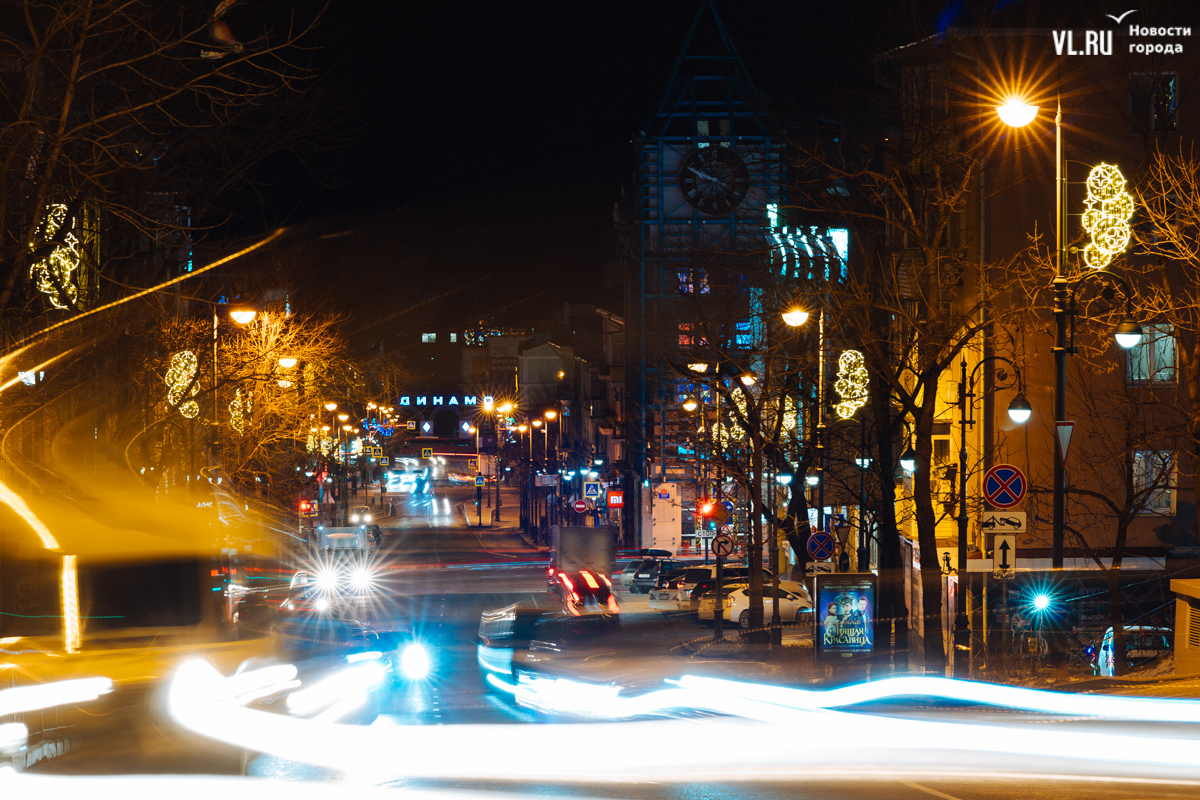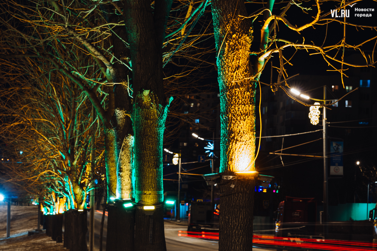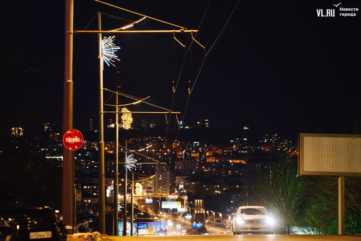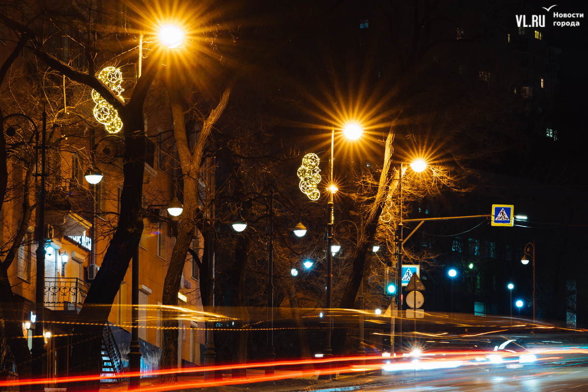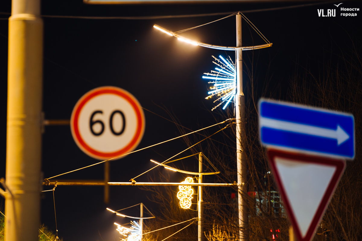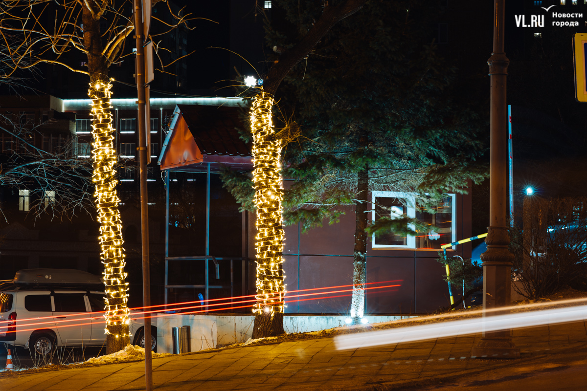 Отметим, что на двух формально главных городских улицах, Светланской и Океанском проспекте, украшения ещё пока не висят. В прошлом году на последнем монтировали пышные люстры, на Светланской устанавливали фигуры в форме ангелов и больших снежинок. Возможно, подобные украшения здесь появятся и в этом году.