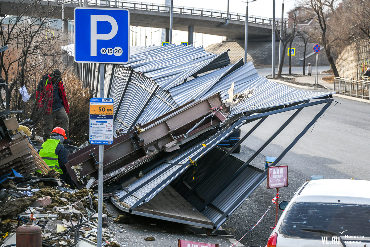 Обновление 12:50: В МЦУ Владивостока сообщили, что сейчас на месте идёт расчистка территории, пешеходная галерея будет восстановлена в ближайшие дни. Сейчас решается вопрос организации движения пешеходов.