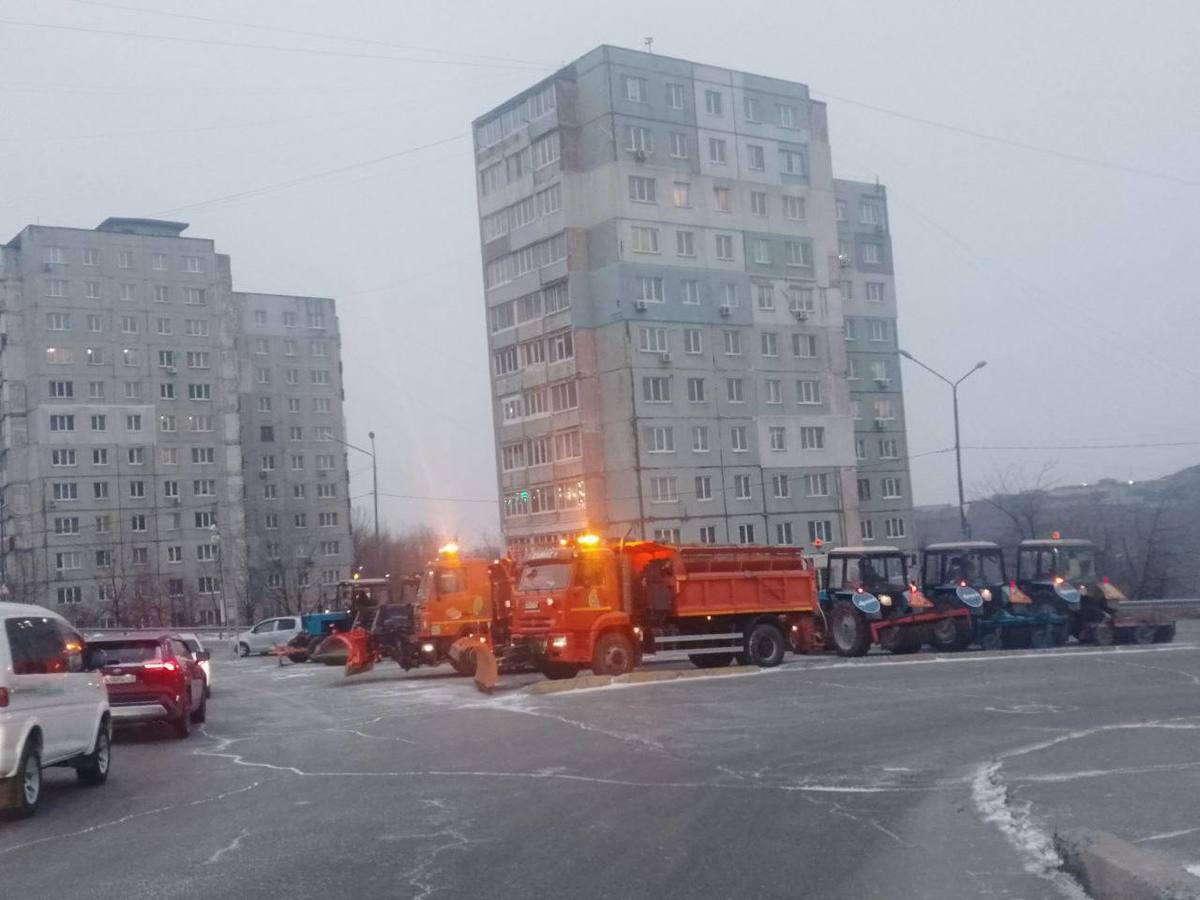 С 3 часов ночи 161 единица спецтехники муниципальной дорожной службы Владивостока находится на точках базирования во всех районах города в связи с непогодой. При усилении осадков они оперативно приступят к уборке.