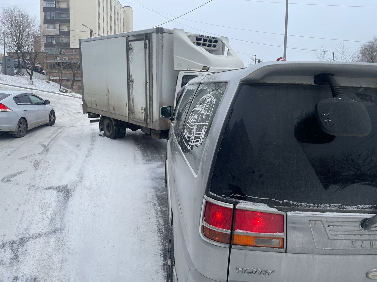 Обновление 16:10: Горожане сообщают о первых ДТП из-за обледенения дорог во Владивостоке. По информации аварийных комиссаров, на Тунгусской грузовик марки Hyundai скатился в микроавтобус Nissan. Люди, по имеющимся сведениям, не пострадали.