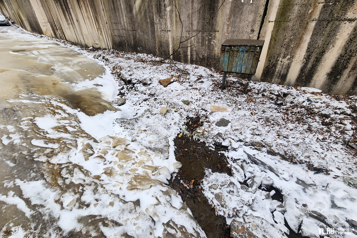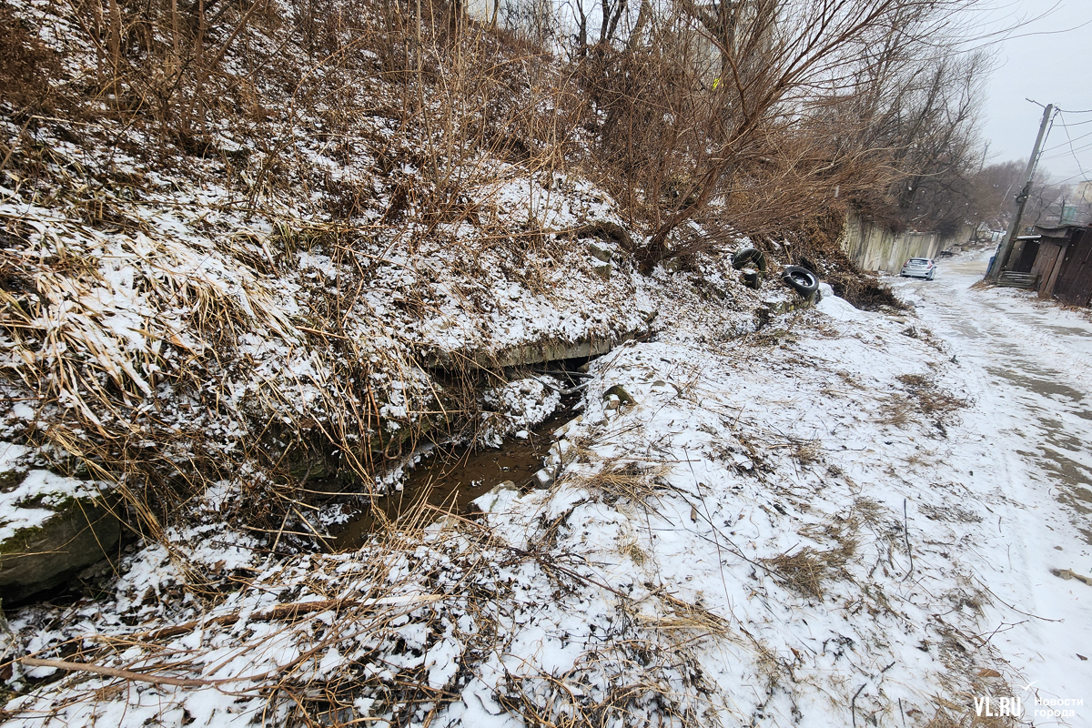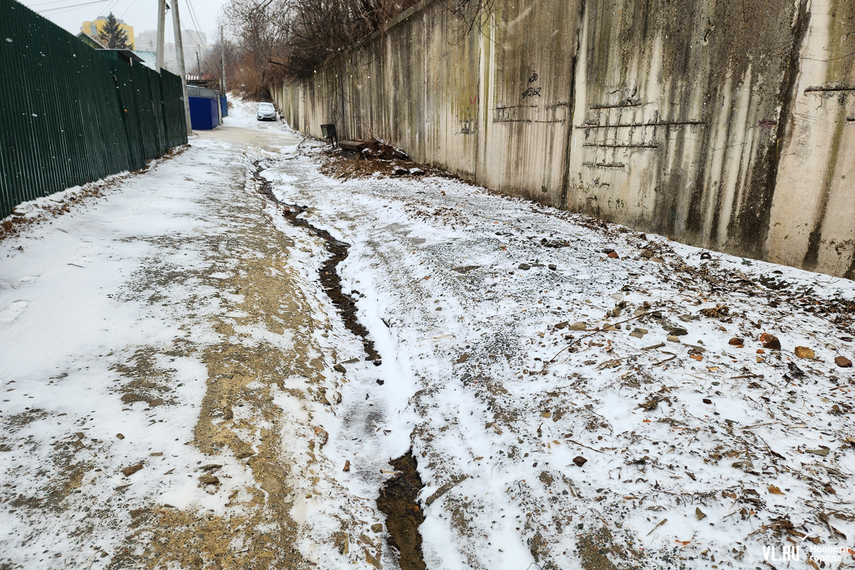 Выше находятся многоквартирные дома № 20, 18, 16, 14, местные жители предполагают, что там мог случиться порыв, который не устраняют, и всё стекает к их участкам. Во ВПЭС сообщили, что их специалисты уже выезжали на место, но порывов на сетях предприятия нет. Тем временем в МЦУ Владивостока настаивают, что дорогу заливают до состояния катка грунтовые воды: