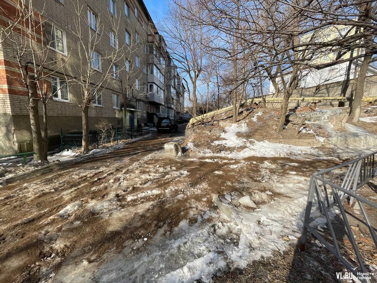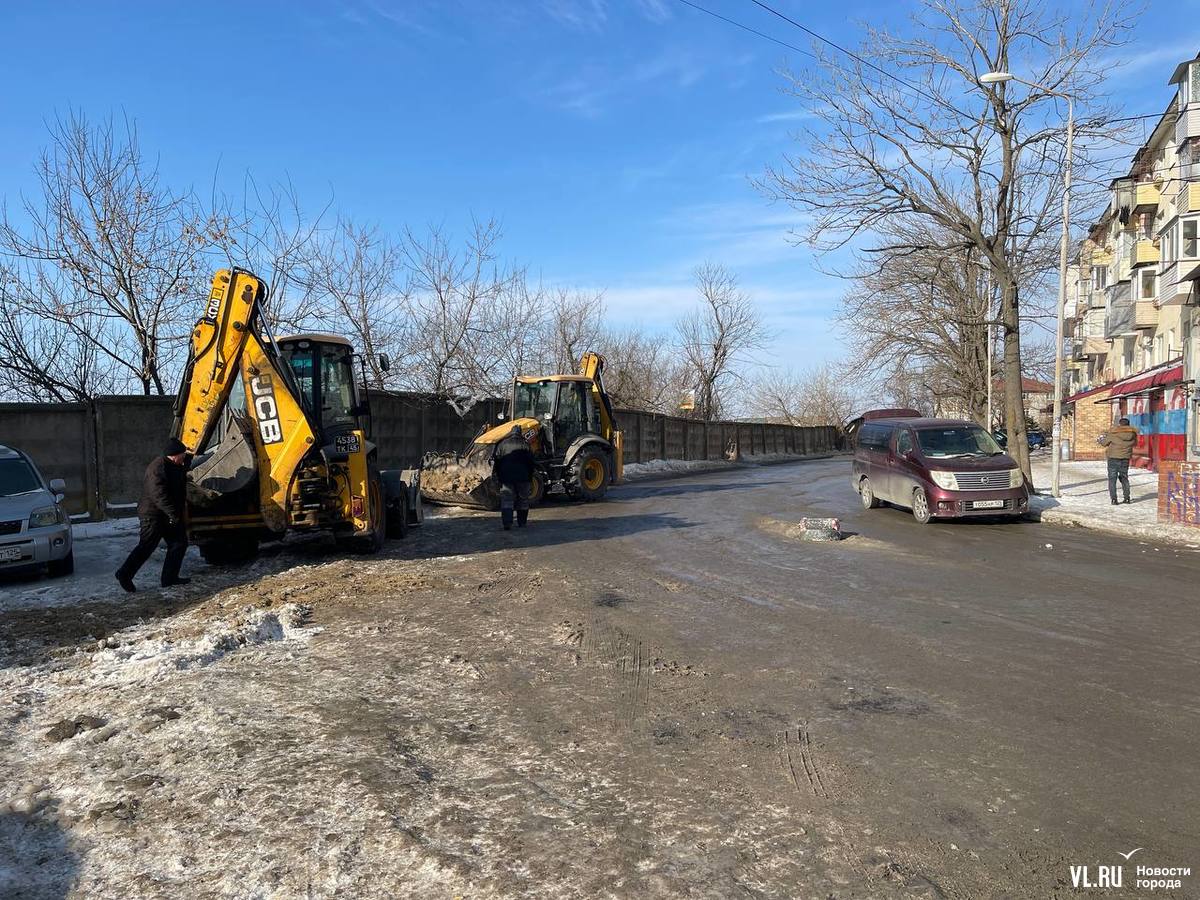 В пресс-службе администрации Владивостока сообщили, что техника предприятия «Содержание городских территорий» чистит дорогу по заявке Примводоканала. В МЦУ Владивостока также ответили, что для устранения течи необходимо будет отключить холодную воду. Сейчас этот вопрос решается.