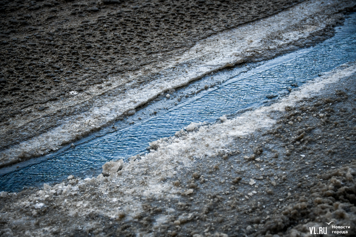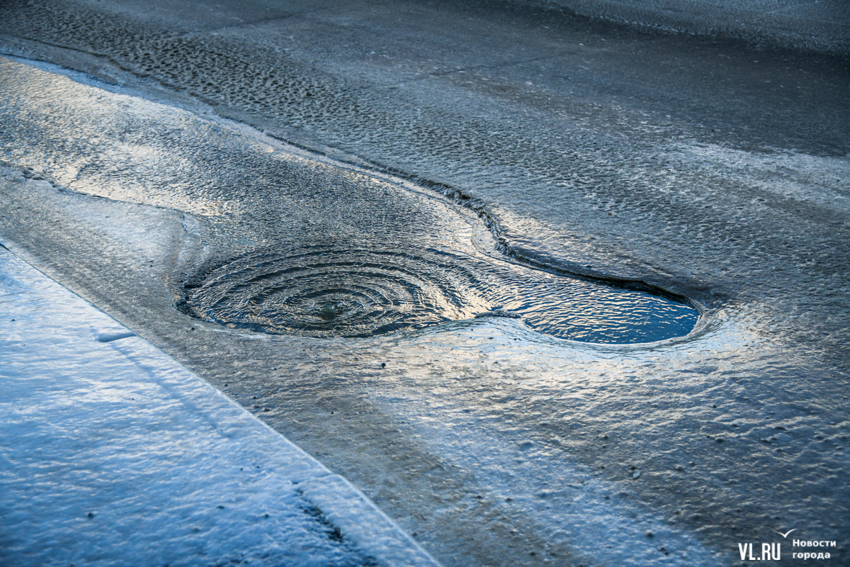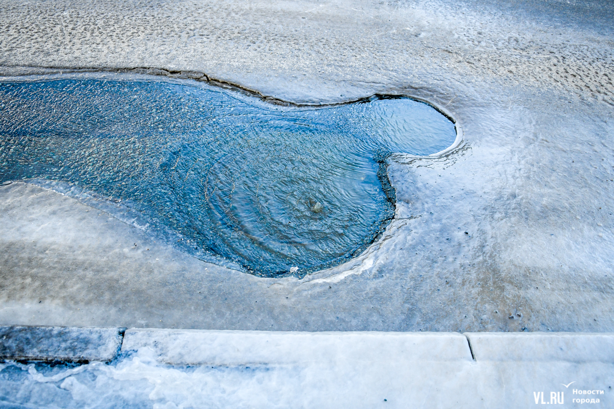 Обновление 12:50: В пресс-службе Примводоканала уточнили, что течь устранена. Также в ближайшее время будет убрана наледь.
