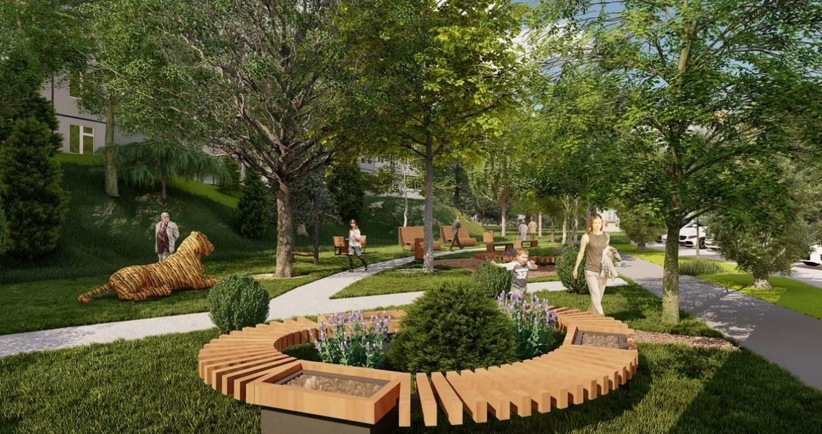 Третий проект называется «Сквер имени Карла Жигура» (1549 голосов). Его местные жители хотят разбить на участке 25:28:040010:10228 около Жигура, 2. На территории сделают бетонные дорожки, часть пешеходных зон будет оформлена декоративной щепой, что позволит сохранить целостность корневой системы уже растущих деревьев. Центральной фигурой сквера станет «Золотой тигр», также здесь поставят качели, парковый стол для шахмат, скамьи, урны.