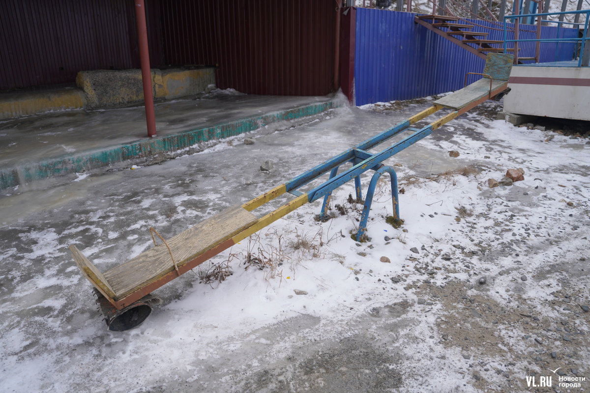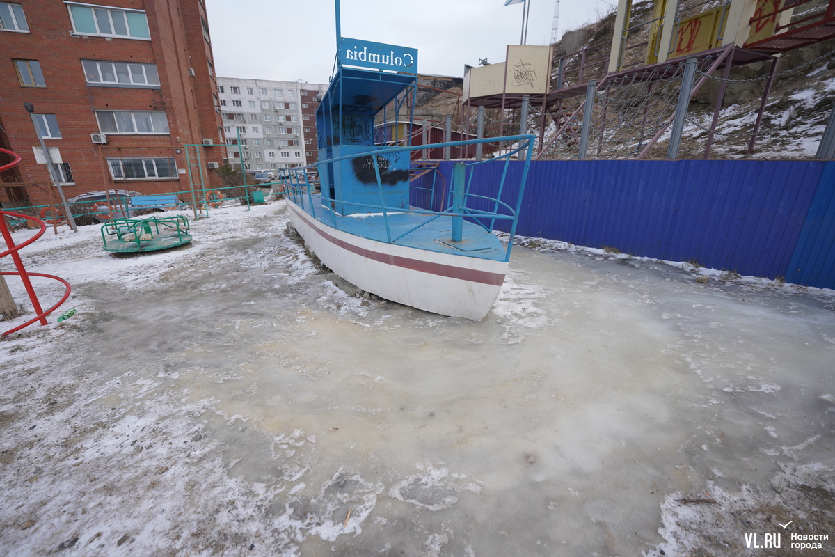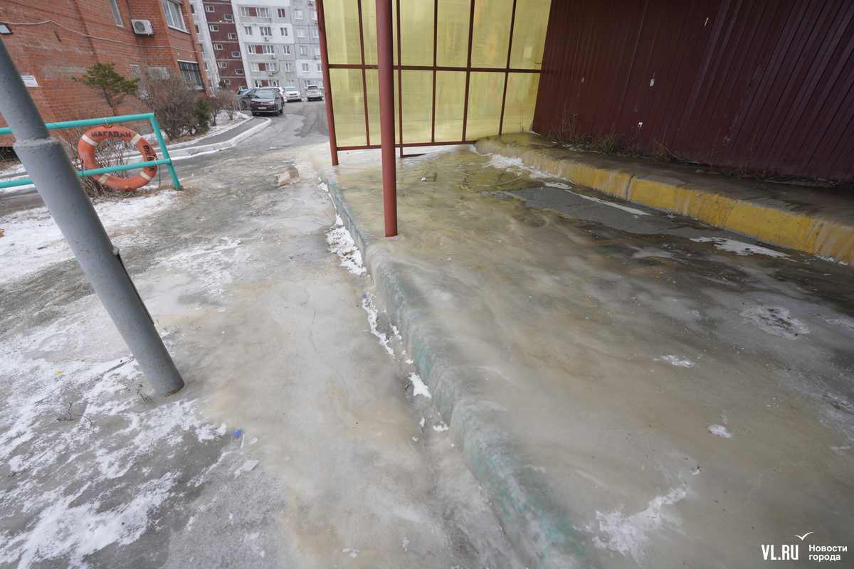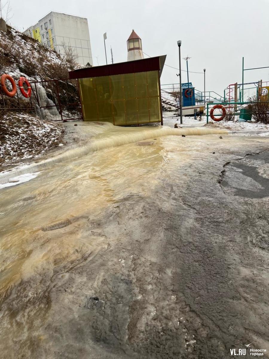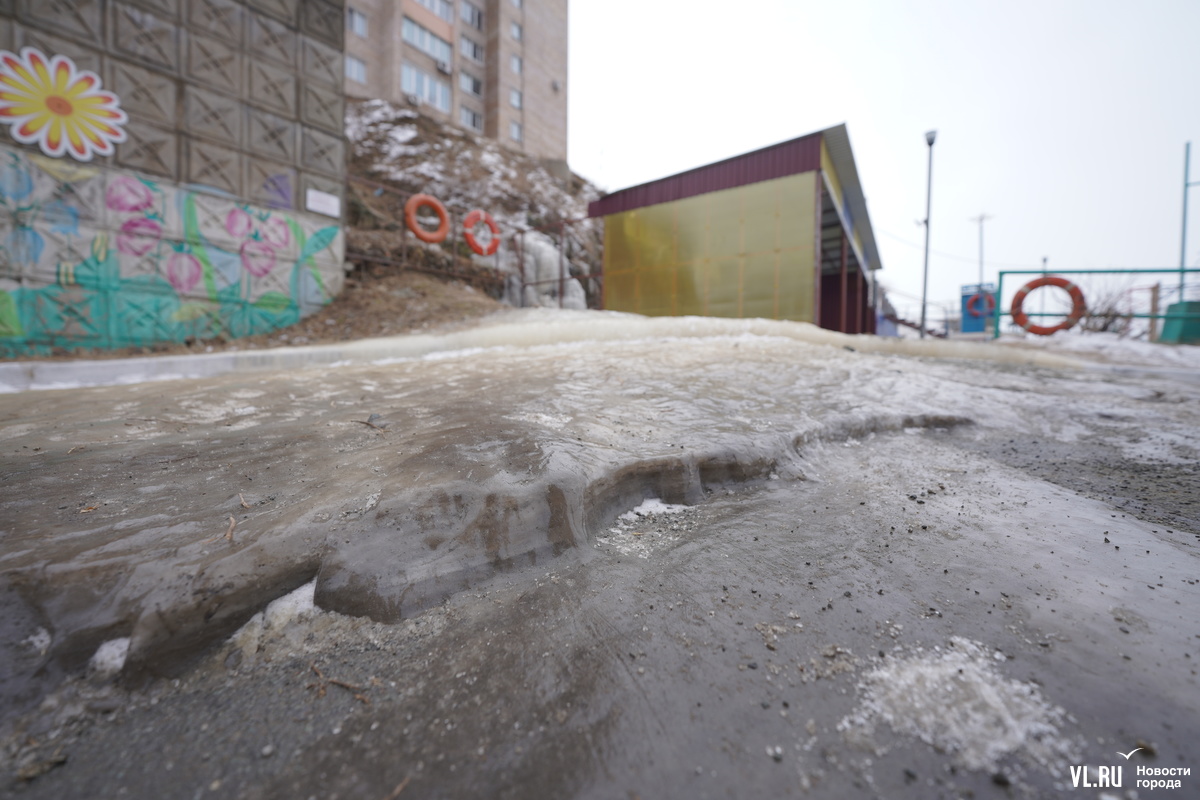 Читатели Новостей VL.ru сообщили о коммунальном происшествии на Толстого, 43а – детскую площадку здесь затопило фекалиями. По информации Примводоканала, заявка от горожан поступила 31 декабря, а устранить засор удалось только первого числа (мешали припаркованные рядом авто). На сегодня игровые конструкции вмёрзли в желтоватый лёд. При этом местные жители рассказали редакции, что канализация протекает здесь больше 10 лет из-за проблем в конструкции сетей.
