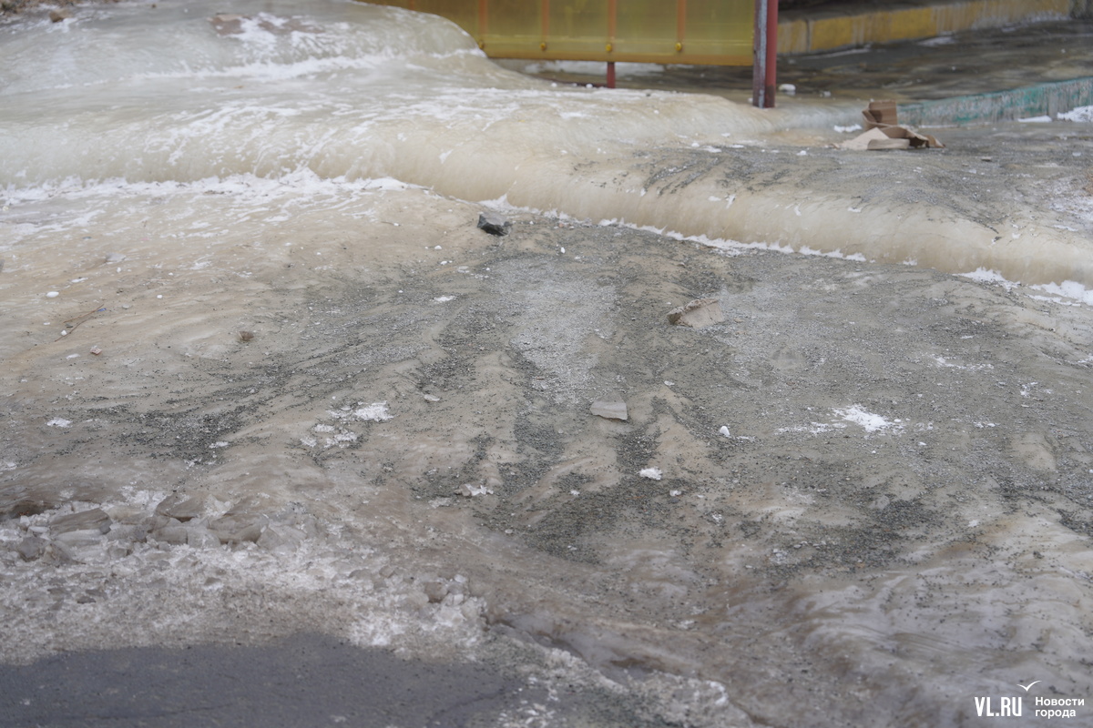 В пресс-службе Примводоканала подтвердили, что 31 декабря поступила заявка о затоплении по данному адресу. Ночью аварийная бригада ликвидировать засор не смогла в связи с запаркованностью территории. Уже 1 января 2024 года специалисты горканализации устранили течь.