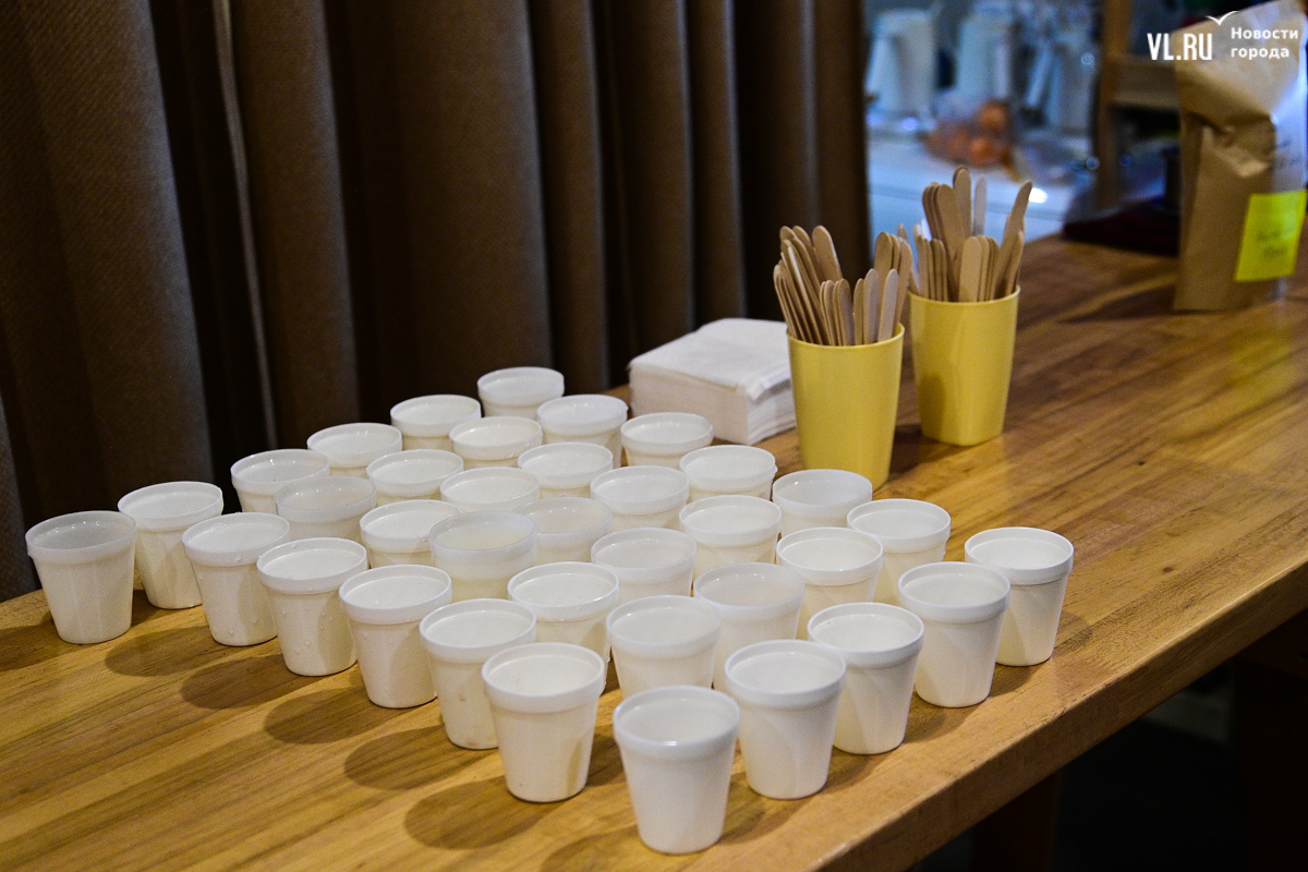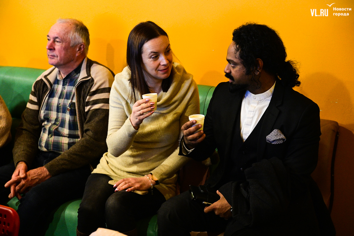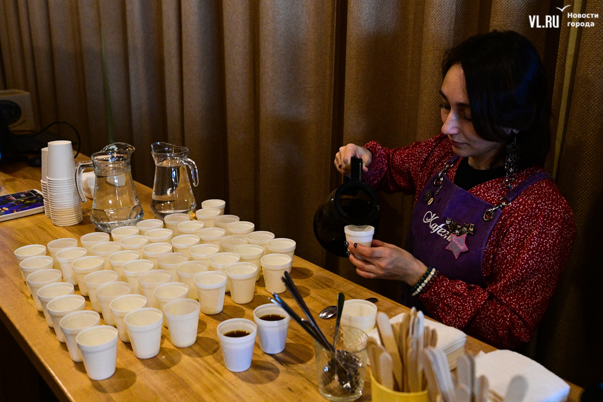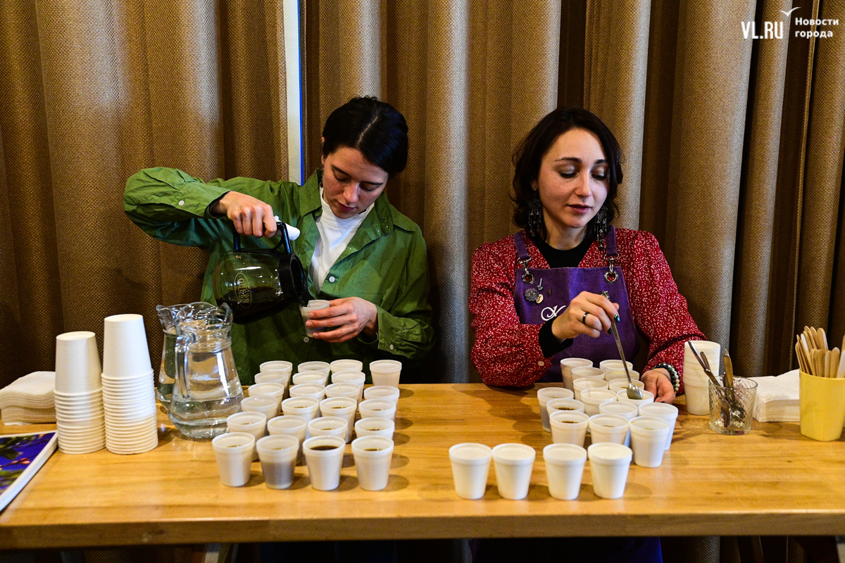На лекцию пришли студенты из Лаоса. Вообще их во Владивостоке порядка сотни, а сегодня мероприятие посетили трое. Молодые люди изучают экономику в ВВГУ, рассказывают, что в их стране существует большой интерес к России и её языку, примером этого служит президент Лаоса Тхонглун Сисулит, который учился в Ленинграде и свободно говорит по-русски (как и все его министры). Русский язык в стране преподают в двух школах, но пришедшие на лекцию студенты его пока только осваивают. На их родине кофе варят в полотняных мешочках, сцеживают и щедро сдабривают сгущённым молоком. Хотя, говорит кофе-тренер «Кафема» Евгений Щукин, в Лаосе сейчас полно кофеен, где напиток без оглядки на традиции готовят в кофемашинах.
