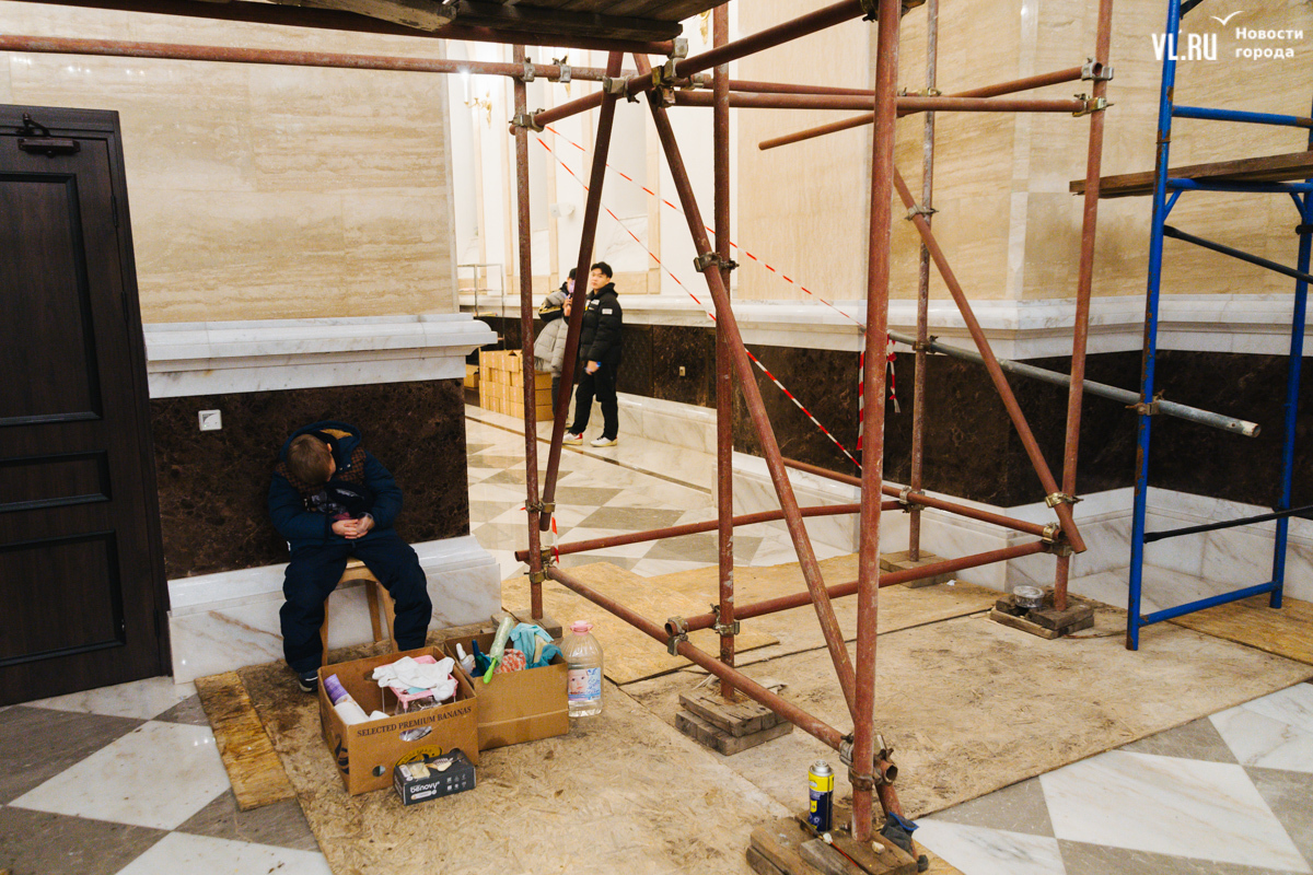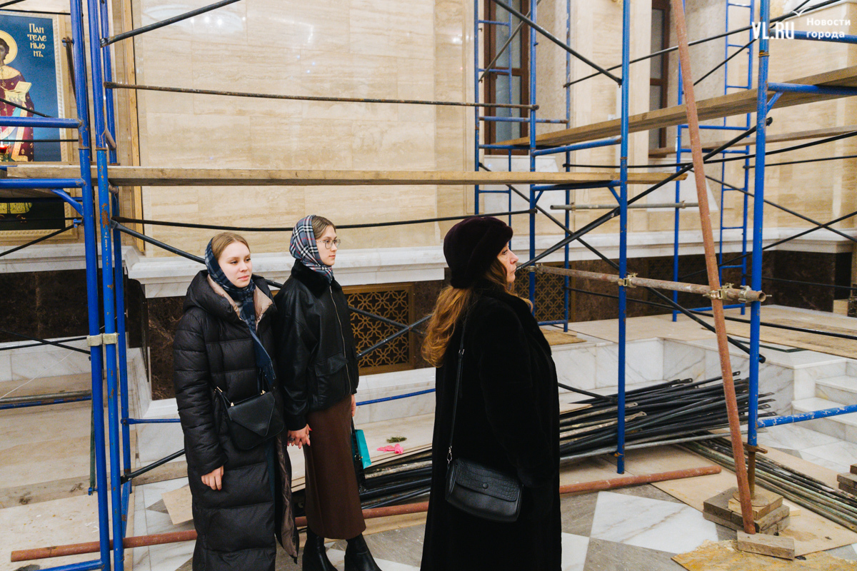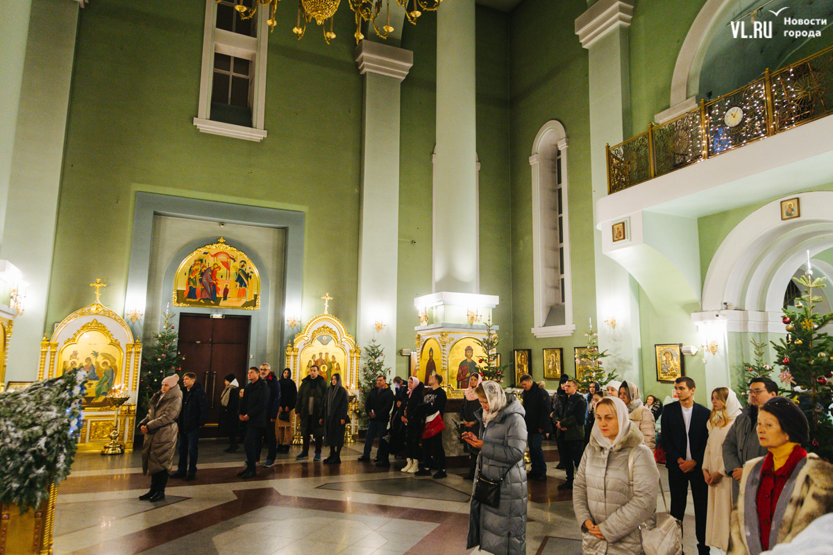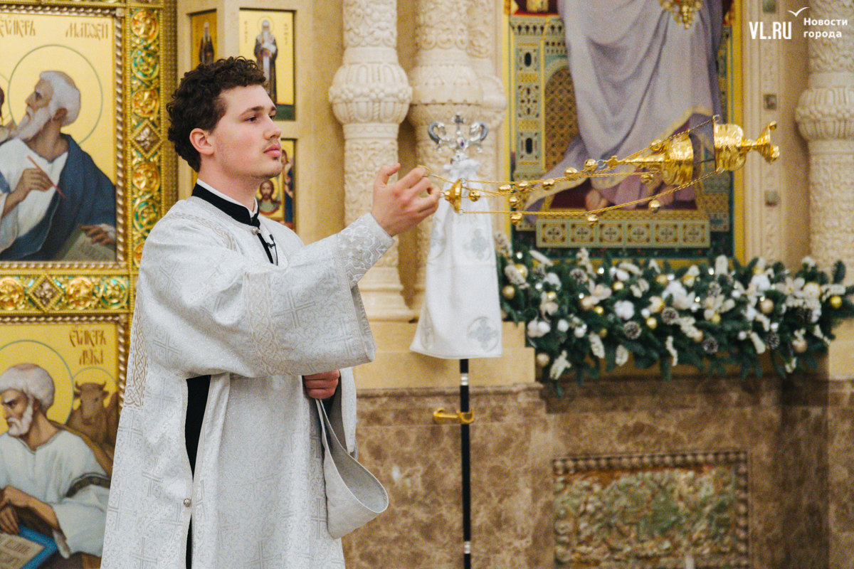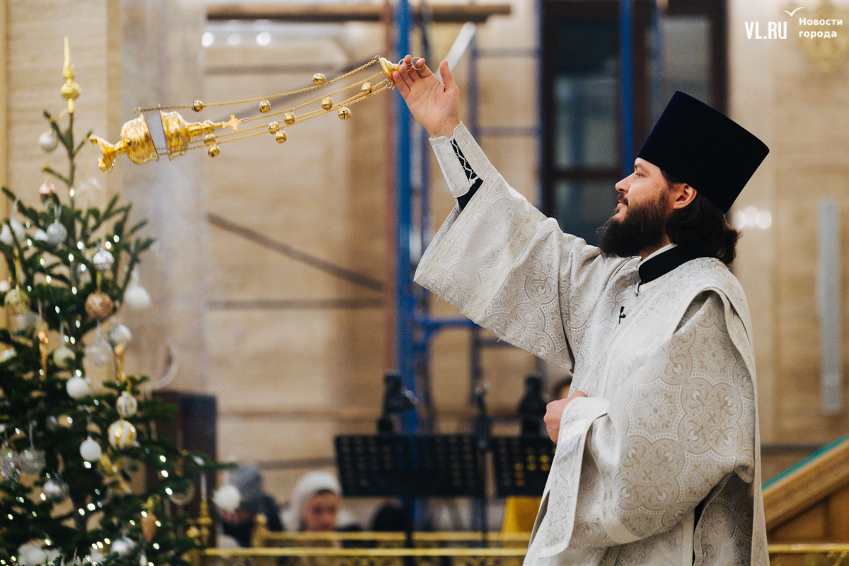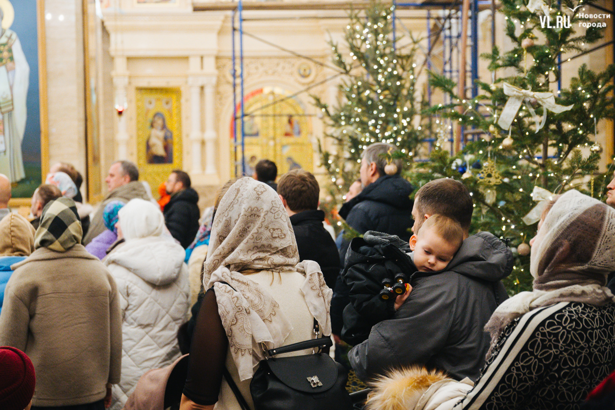 В ночь с 6 на 7 января в храмах Приморья прошли рождественские литургии. Пожалуй, больше всего людей собралось в самом крупном, Спасо-Преображенском кафедральном соборе во Владивостоке, который вмещает до 3000 человек. Это первая рождественская служба в храме – его официально открыли в августе прошлого года. А сейчас внутренний периметр вновь укрыт строительными лесами – иконописцы расписывают стены.