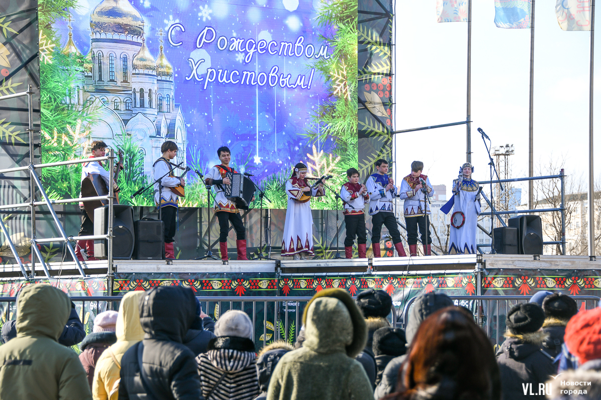 7 января православные отмечают светлый праздник Рождества Христова, а вместе с ними гуляет и не воцерковленный люд. На главной площади Владивостока в новогоднем городке сегодня дают праздничный тематический концерт, правда, в декорациях ничего не поменялось.