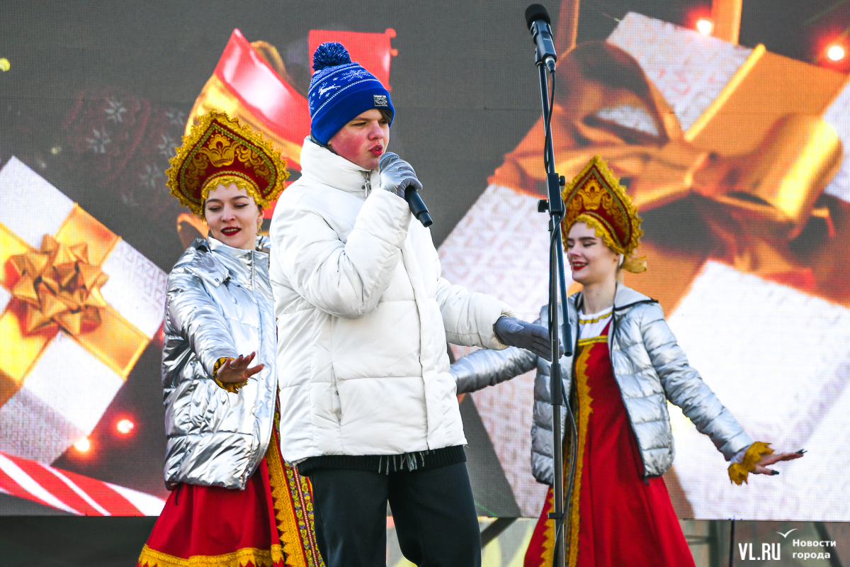 Праздничная программа началась в полдень. С Рождеством Христовым собравшихся на площади поздравили глава Владивостока Константин Шестаков и епископ Уссурийский, викарий Владивостокской епархии Иннокентий. Оба они напомнили, что Рождество – праздник семейный, а 2024 год в России объявлен Годом семьи.
