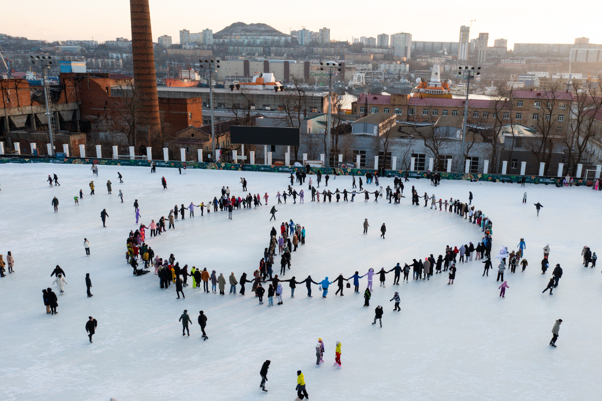 В честь признания Владивостока молодёжной столицей России в 2024 году на катке стадиона «Авангард» решили провести флешмоб. За несколько дней жителей города стали приглашать к участию. Предполагалось, что катающиеся выстроятся в фигуру часов и сделают один оборот стрелки, символизируя наступление времени молодёжи. На деле всё оказалось немного сложнее и не так красиво.