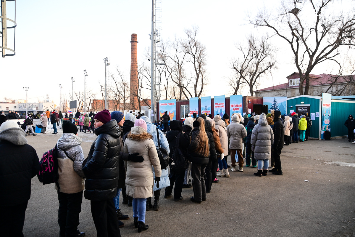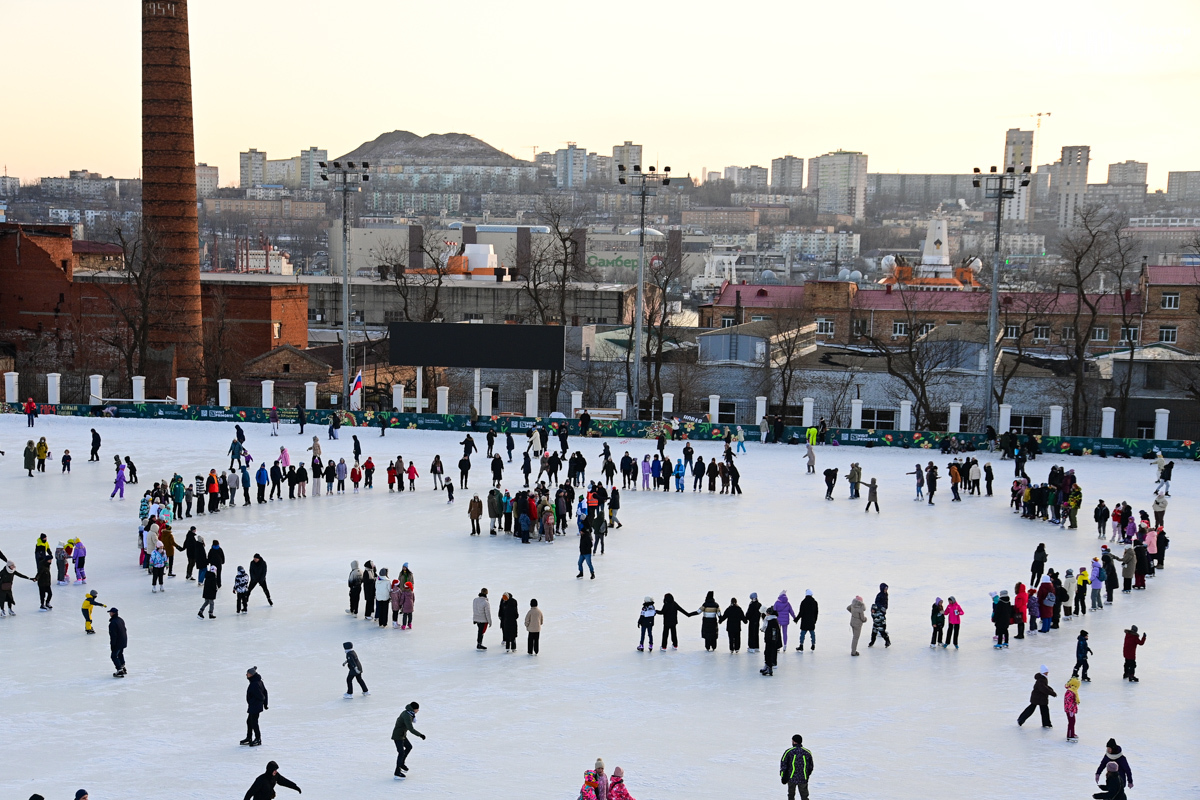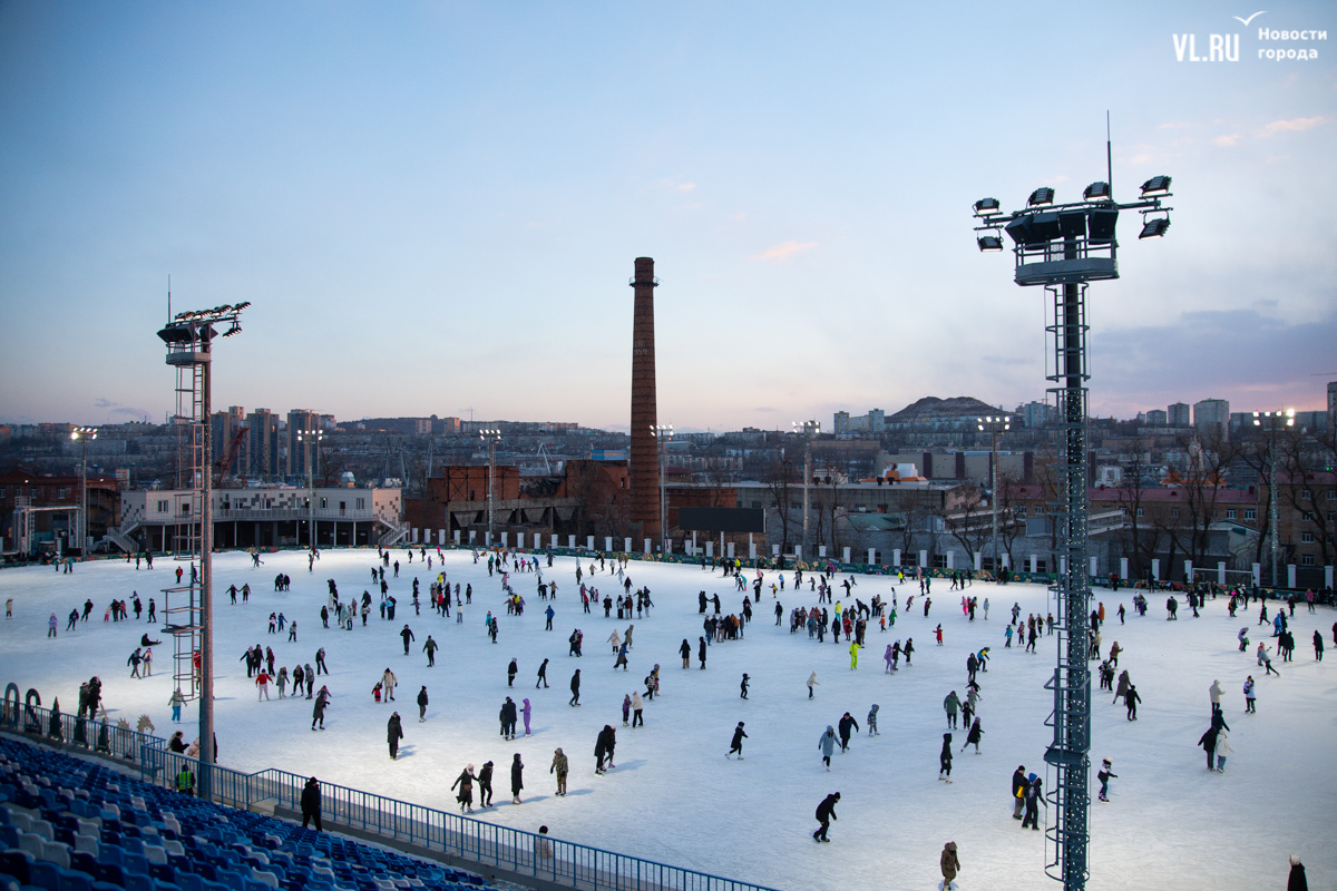 Стоит отметить, что 7 января во Владивостоке наступила настоящая зима: резко похолодало, задул сильный ветер. Так что людей к вечеру на «Авангарде» было меньше, чем ранее. Вход на каток сделали только один, через нижние ворота на улице Капитана Шефнера. Там же, на входе, открыли бесплатный прокат и теплушку.