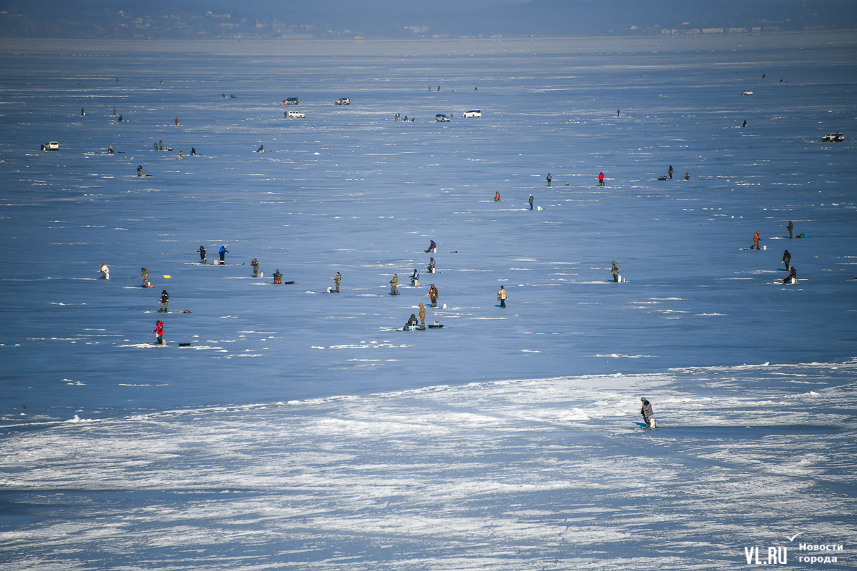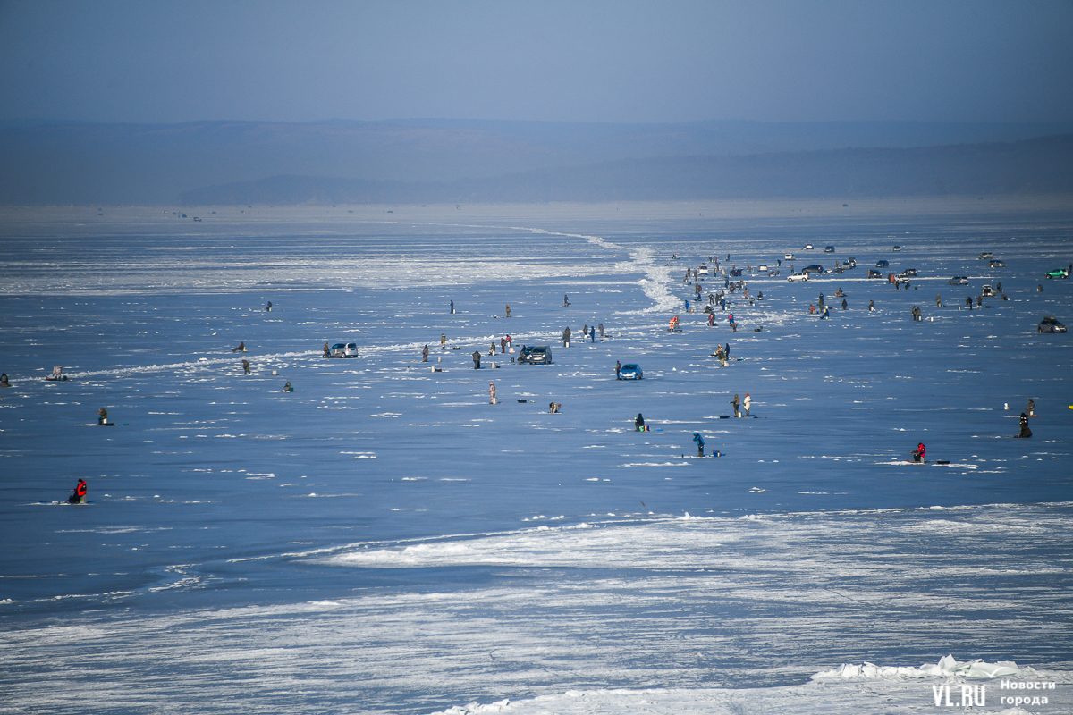 С сегодняшнего дня на территории Владивостокского городского округа разрешён выход на лёд в открытой части Амурского залива. Лёд нестабилен, не везде залив промёрз однородно. Но рыбаки ещё до официального разрешения бесстрашно шли на замёрзшую воду. Сегодня в районе острова Скребцова их сотни. Многие выезжают на автомобилях, несмотря на запреты, доезжают до того места, где, как им кажется, ставить машину безопасно, и идут дальше пешком.