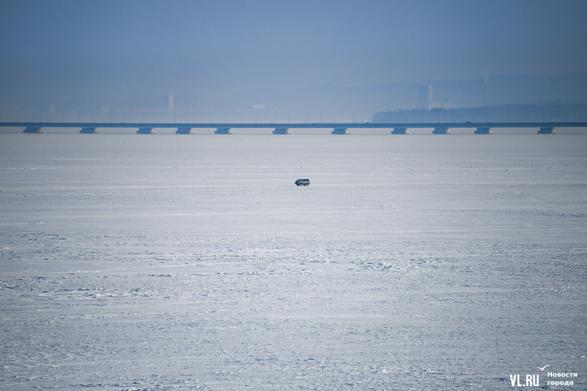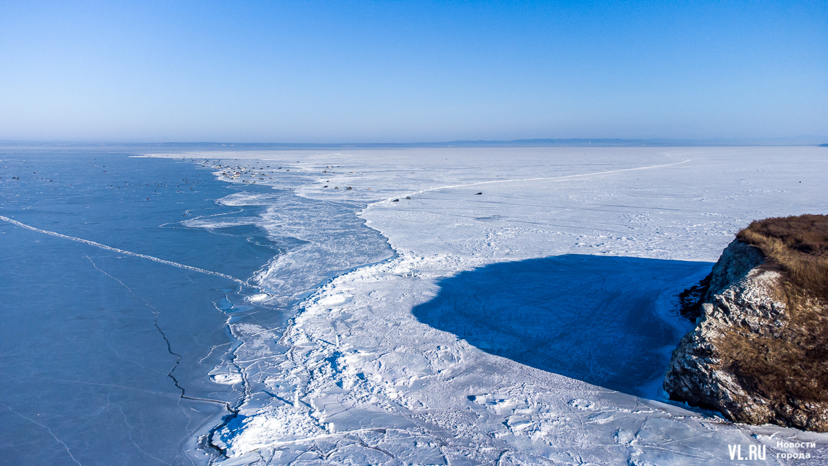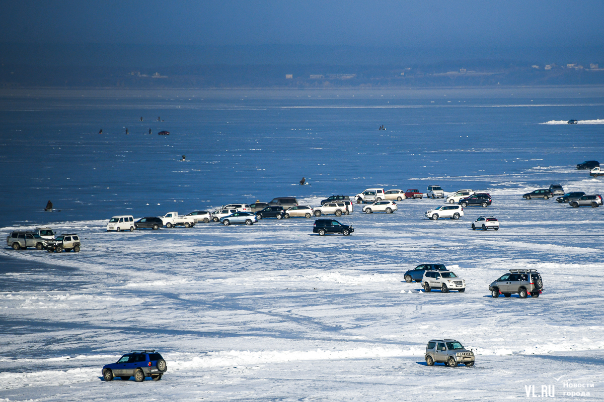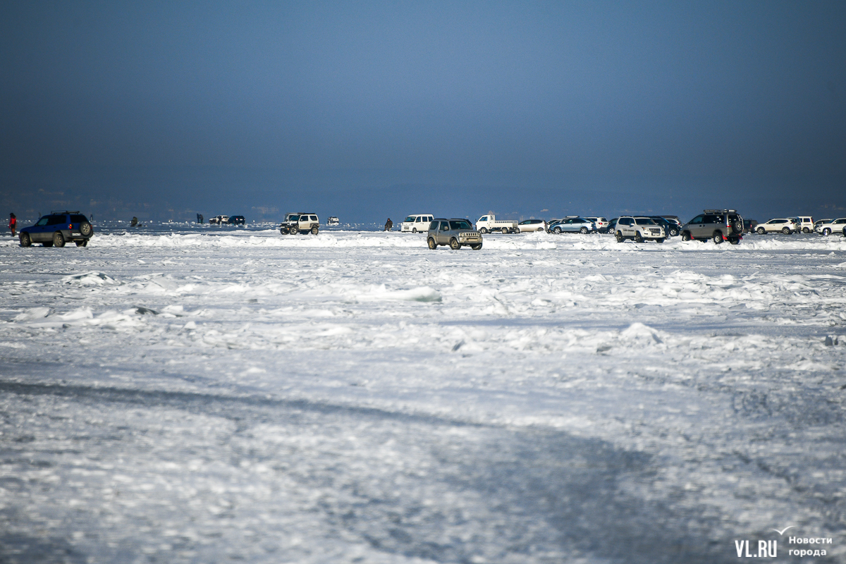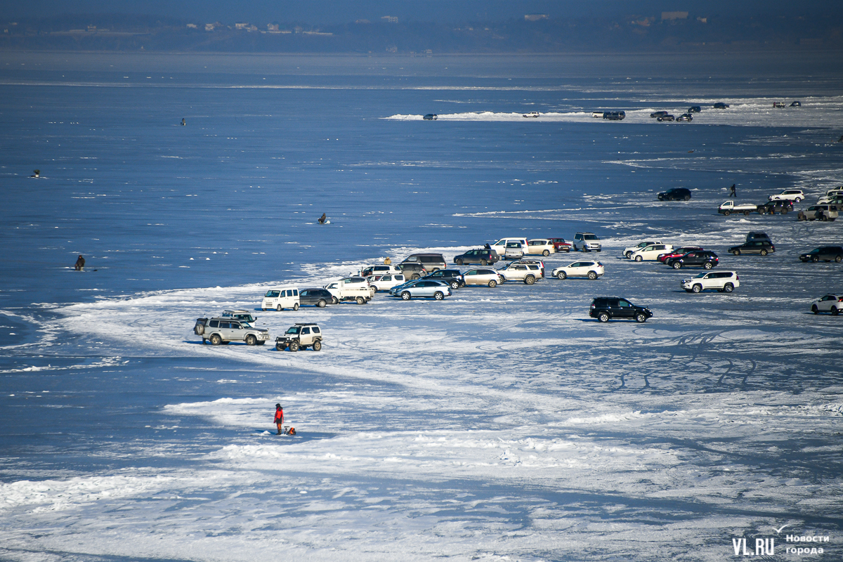 Многие рыбаки доезжают до островка по белому ледовому полю, где лёд, возможно, крепче. Затем ставят машину у самой кромки и пешком «переходят границу» туда, где лёд тёмный. В результате вся «приграничная полоса» напоминает огромную хаотичную парковку, а люди сидят за несколько сотен метров. При этом выезд на лёд запрещён в Приморском крае всем и всегда. И такими сознательными рыбаками пляж «Чайка» тоже запаркован так, что по береговой линии не пройти.