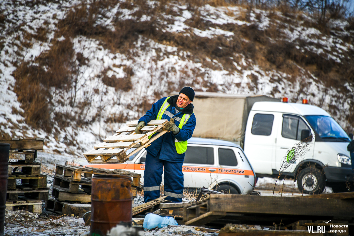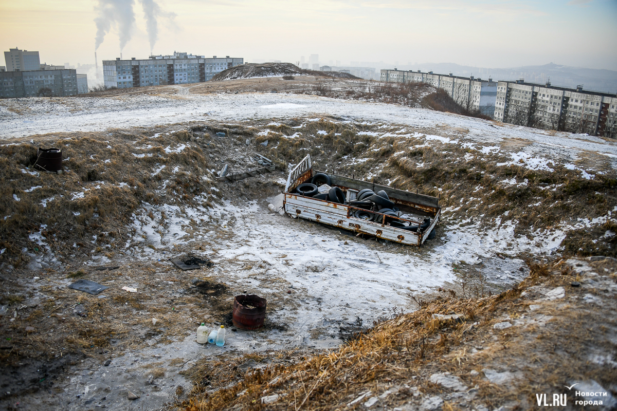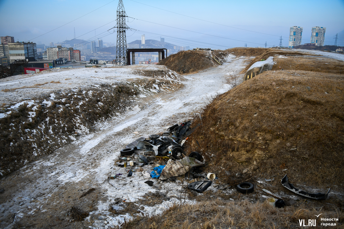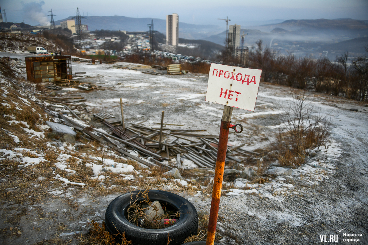 Правда, сегодня прокуратуру интересовали не все автостоянки в охранной зоне, а только те участки, которыми распоряжается администрация Владивостока. Таких здесь как минимум четыре. В первую очередь проверяющие приехали на участок 25:28:010043:25 площадью 7515 кв. м. Ещё в декабре здесь рядами стояли машины, а также работала какая-то авторазборка. Но сегодня участок оказался пустым. Только строительный мусор остался да какая-то странная конструкция. Сотрудники СГТ наклеили на неё требование демонтировать, покидали брёвна на кучу, а потом поехали на другой участок.