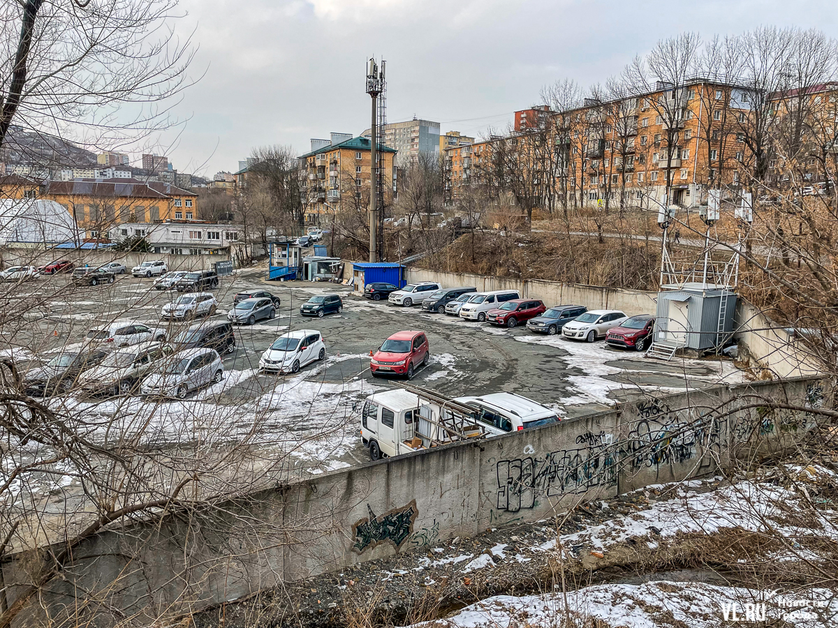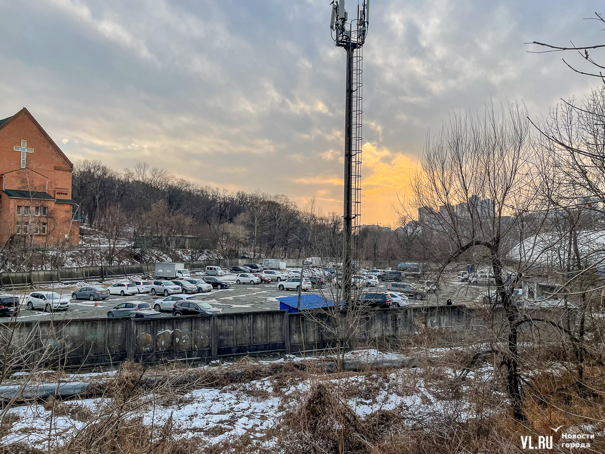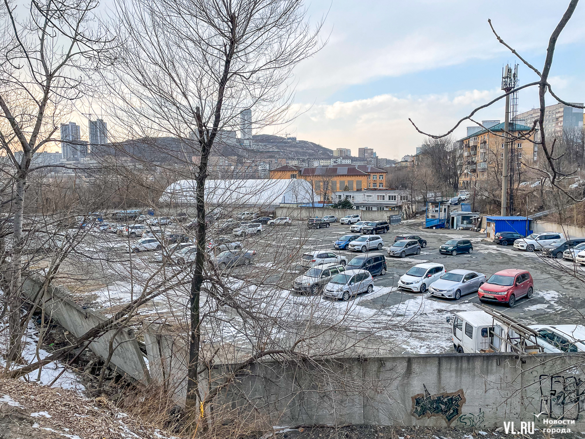 Разрешение на строительство многофункционального центра на парковке между «Грандом» и «Универсамом» в итоге отозвано администрацией Владивостока с 10 октября из-за нарушения противопожарных норм. К тому времени собственник успел возвести два этажа и начал заливать бетон для третьего. Ожидают ли подобные перипетии высотку у Минного городка, покажет только время. Сейчас, как и несколько лет назад, здесь расположена автостоянка (точное время её существования редакции неизвестно).