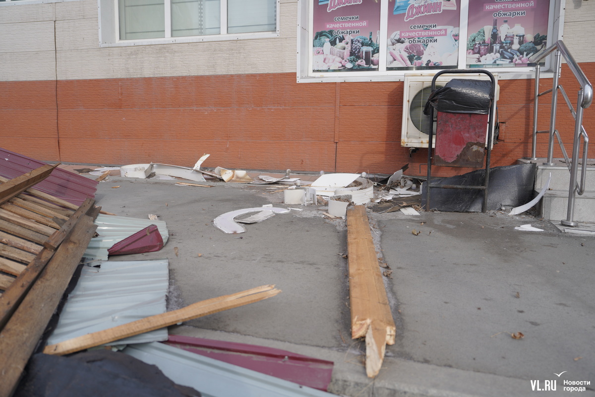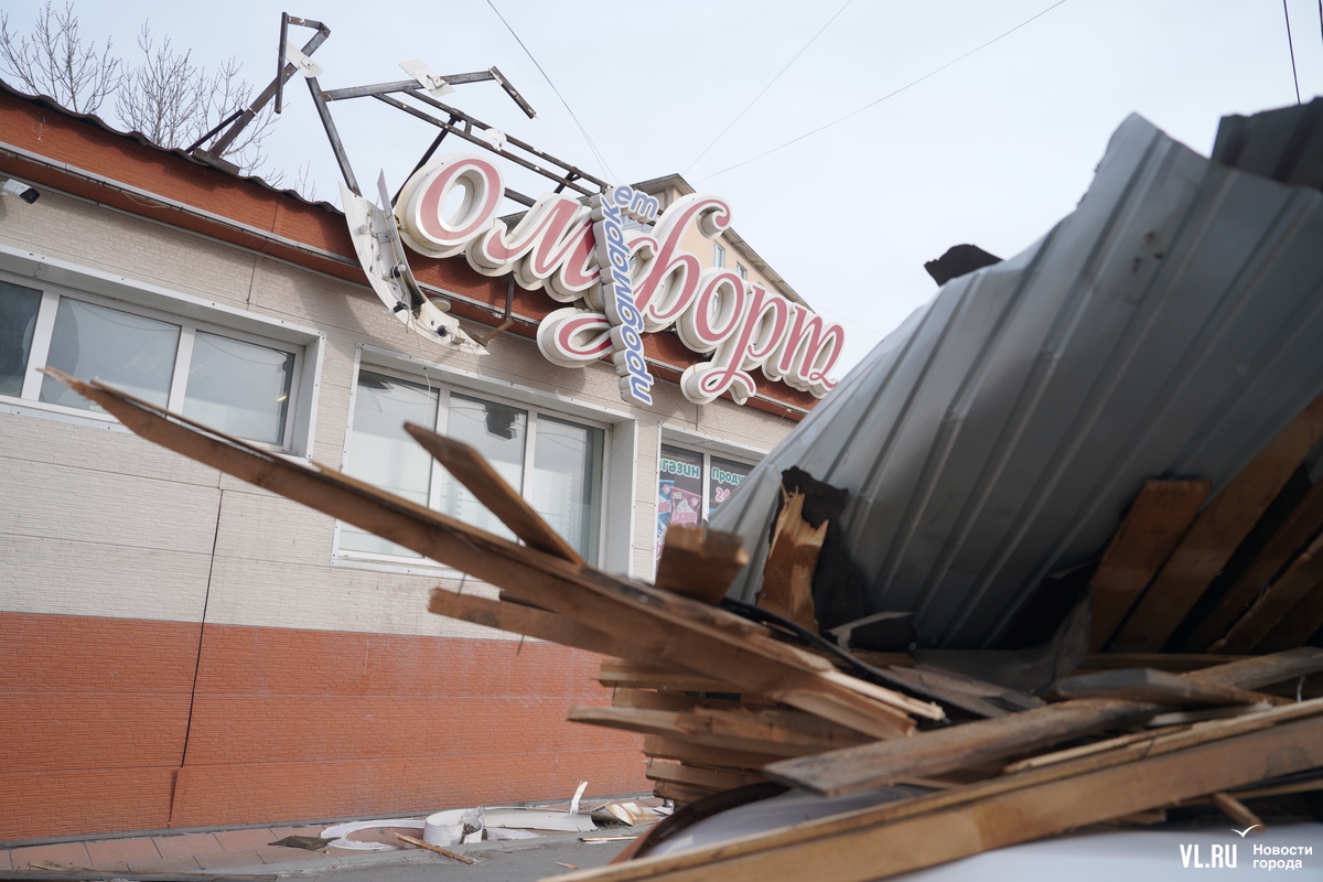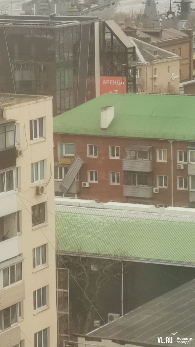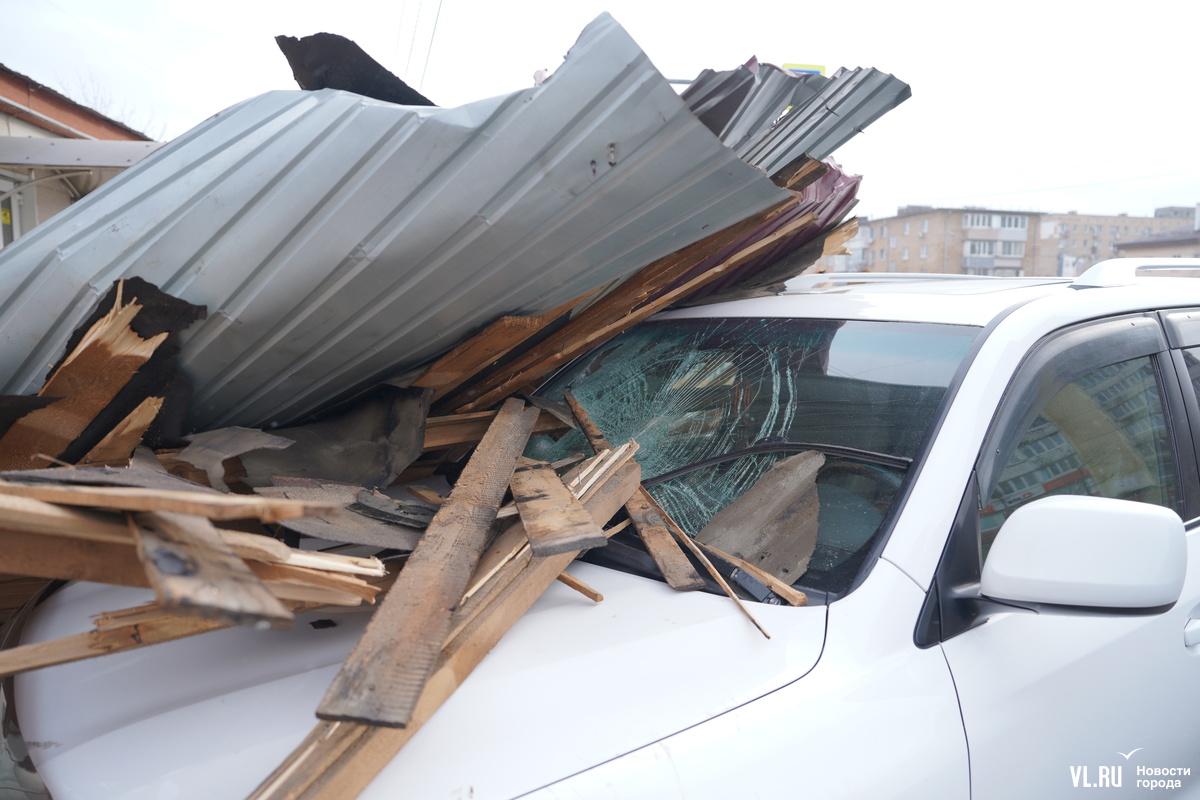 Ранее синоптики передавали, что на побережье порывы ветра будут достигать 23-30 м/с. Похоже, что на деле они во Владивостоке ещё выше. В соцсетях появились видео, как на Запорожской ветер срывает кровлю с магазина «Комфорт», куском повредило Toyota Land Cruiser.