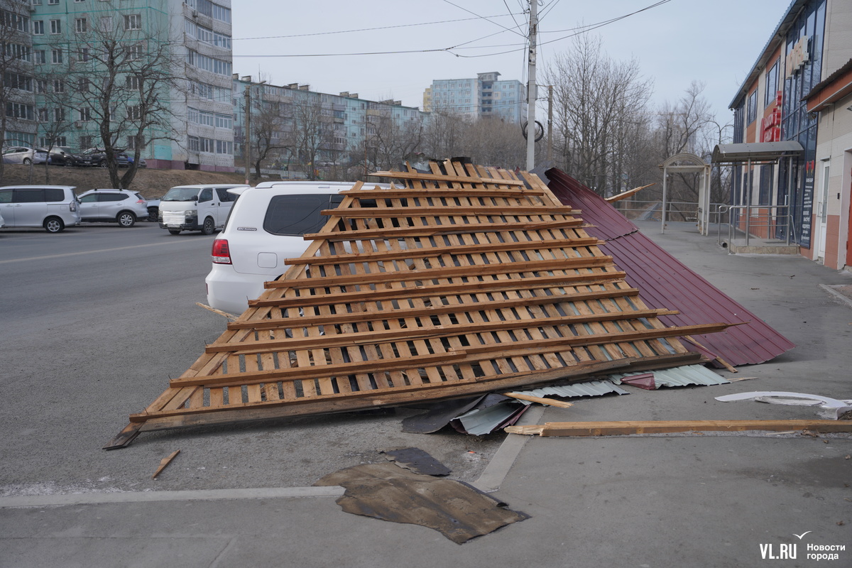 Снегопада во Владивостоке в понедельник пока не случилось – на улице видны только мелкие снежинки. А вот предупреждения о сильном ветре оправдались на все 100%. На кольце Запорожской уже сорвало крышу с магазина прямо на припаркованные авто. На Патрокле разбросало по округе забор со стройки, и не только там. А на Адмирала Фокина оборвало гирлянду с фонарями, которую только недавно починили. И список разрушений будет только пополняться.