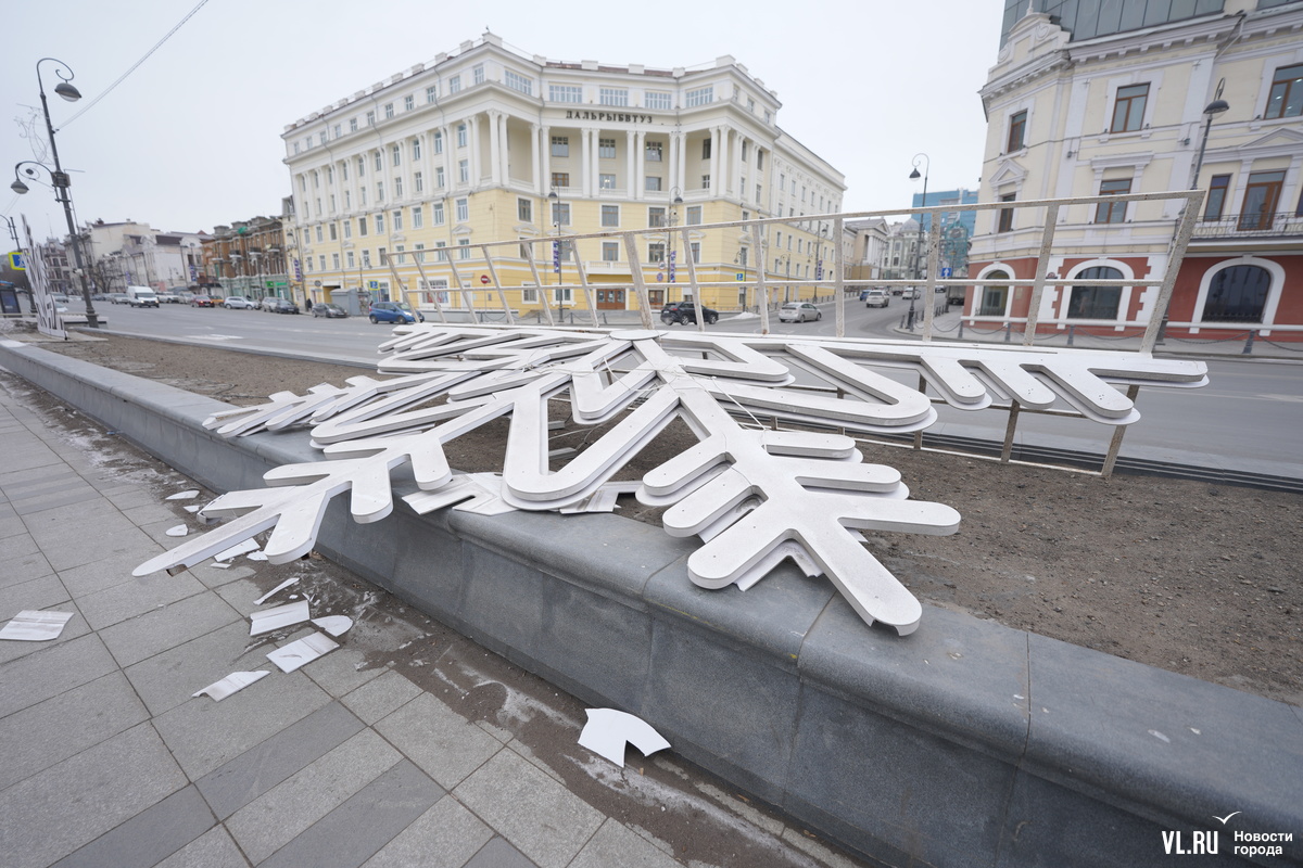 На Адмирала Фокина, где недавно ветер сдул несколько новых фонарей, на этот раз упала вся гирлянда. В МЦУ Владивостока сообщили, что подрядчик уже выехал на устранение.