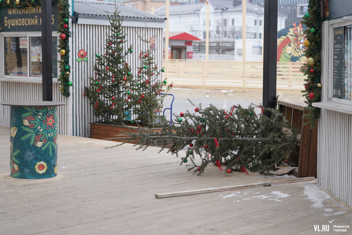 Обновление 14:50: Читатели Новостей VL.ru и корреспонденты продолжают делиться кадрами разрушений, причинённых городу порывами ветра. Горожане сообщают, что у бассейна МГУ сорвало крышу. А в районе бывшего пивзавода «Ливония» пешеходный «тоннель» рядом со стройплощадкой буквально завалился на бок, немногочисленные пешеходы идут по дороге. Досталось и новогоднему городку на центральной площади Владивостока. Там ветер опрокинул ёлки, ограждения и декоративные фигуры.