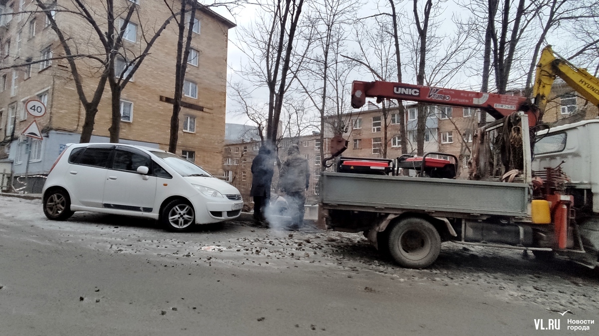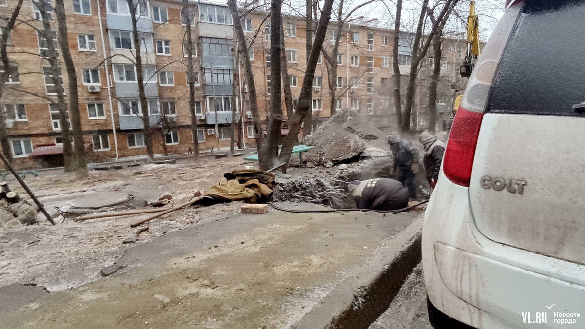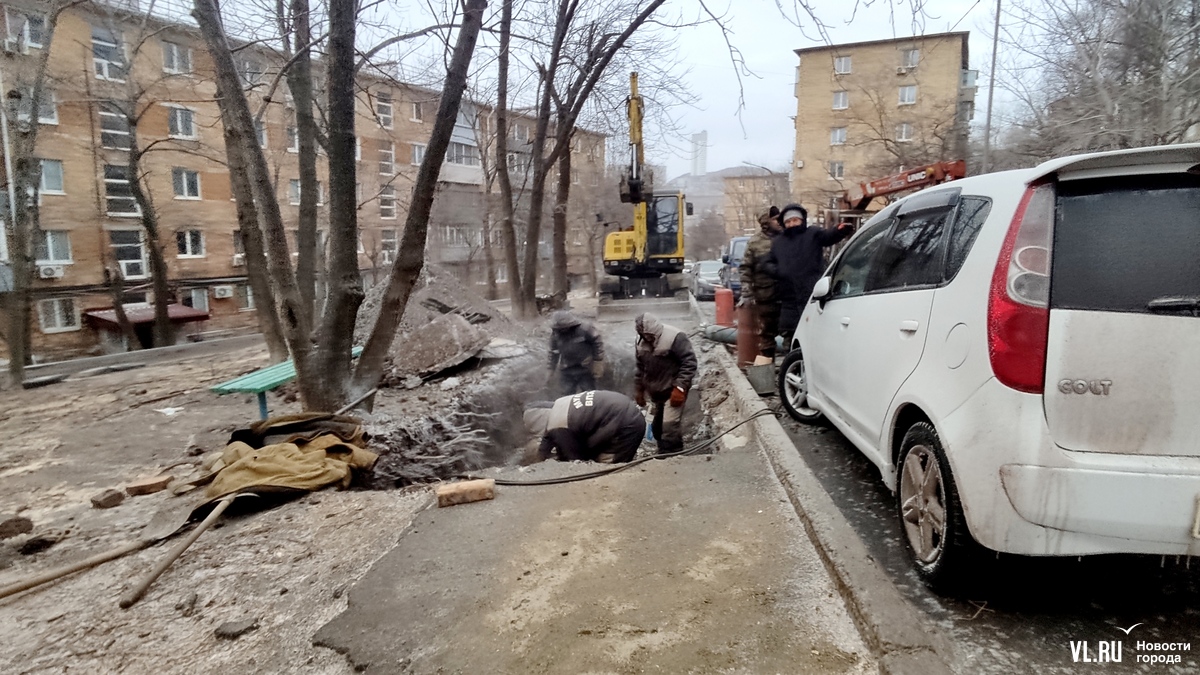 Во ВПЭС, в чьём ведении находятся сети, информацию о фонтане опровергли, но авария действительно есть. Сейчас коммунальщики разобрали место порыва и устраняют течь. Воду выключили. По информации сервиса «Отключения воды и света» на VL.ru, без отопления и горячей воды осталось 77 домов.