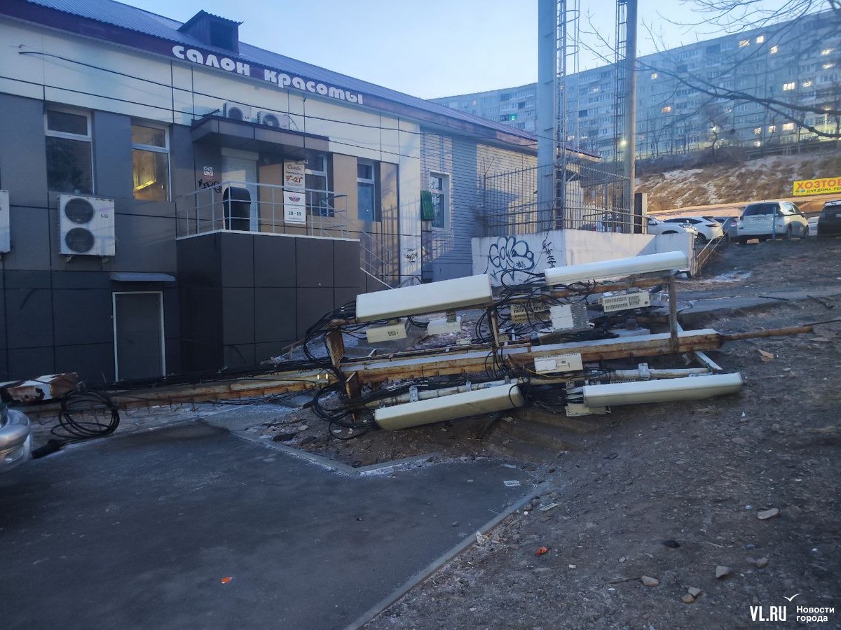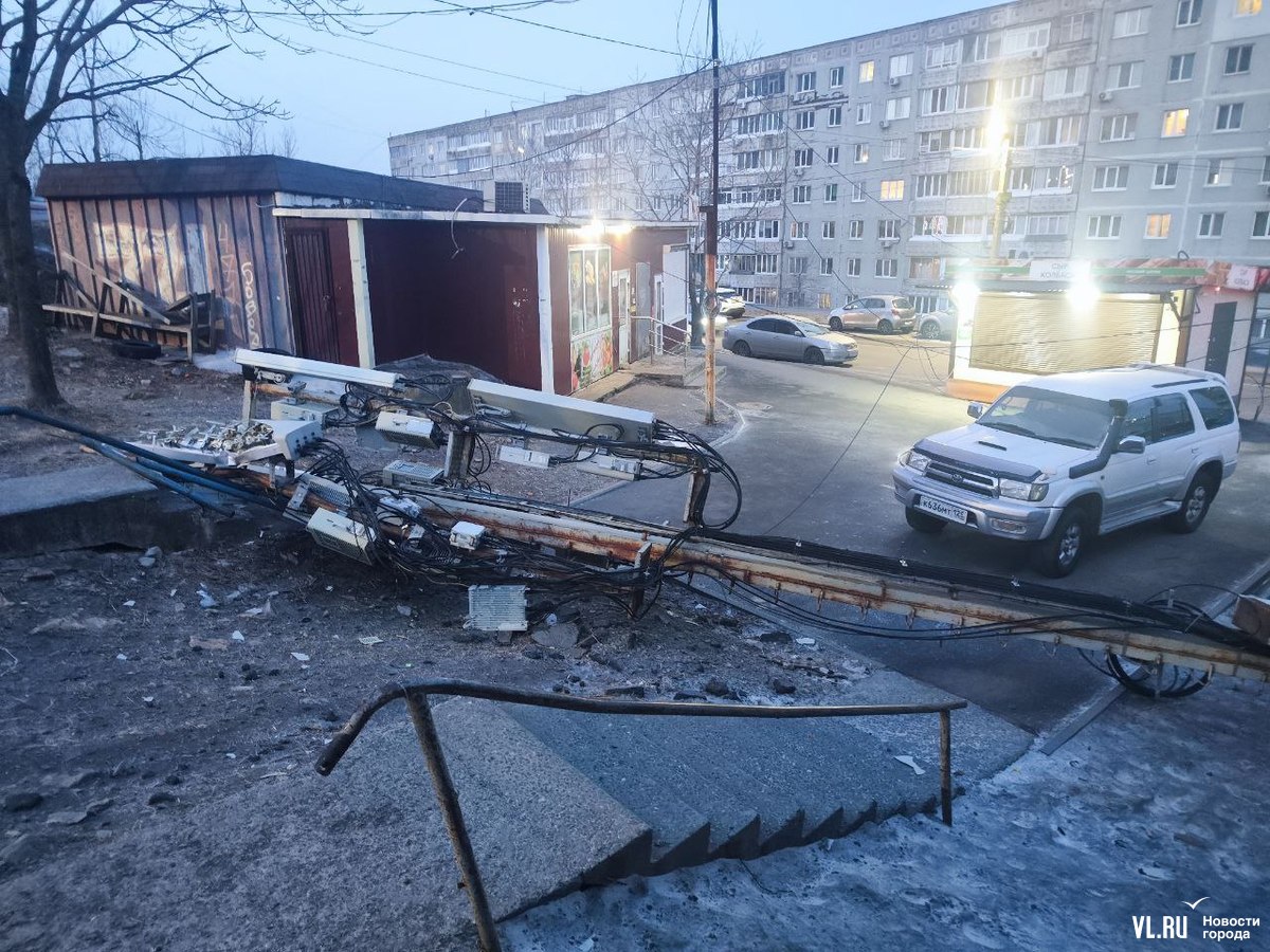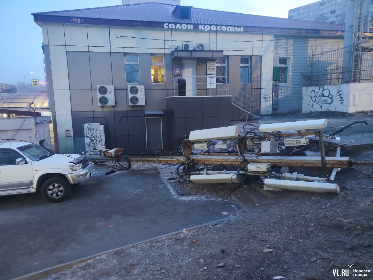 Во Владивостоке вечером 22 января от сильного ветра завалилась вышка сотовой связи, расположенная недалеко от торгового центра на Нейбута. На подаче интернета это не отразилось. Разбирать повреждённую конструкцию будут завтра. Столб перекрыл проход сразу по двум лестницам. Читатели Новостей VL.ru поделились фото с места происшествия.