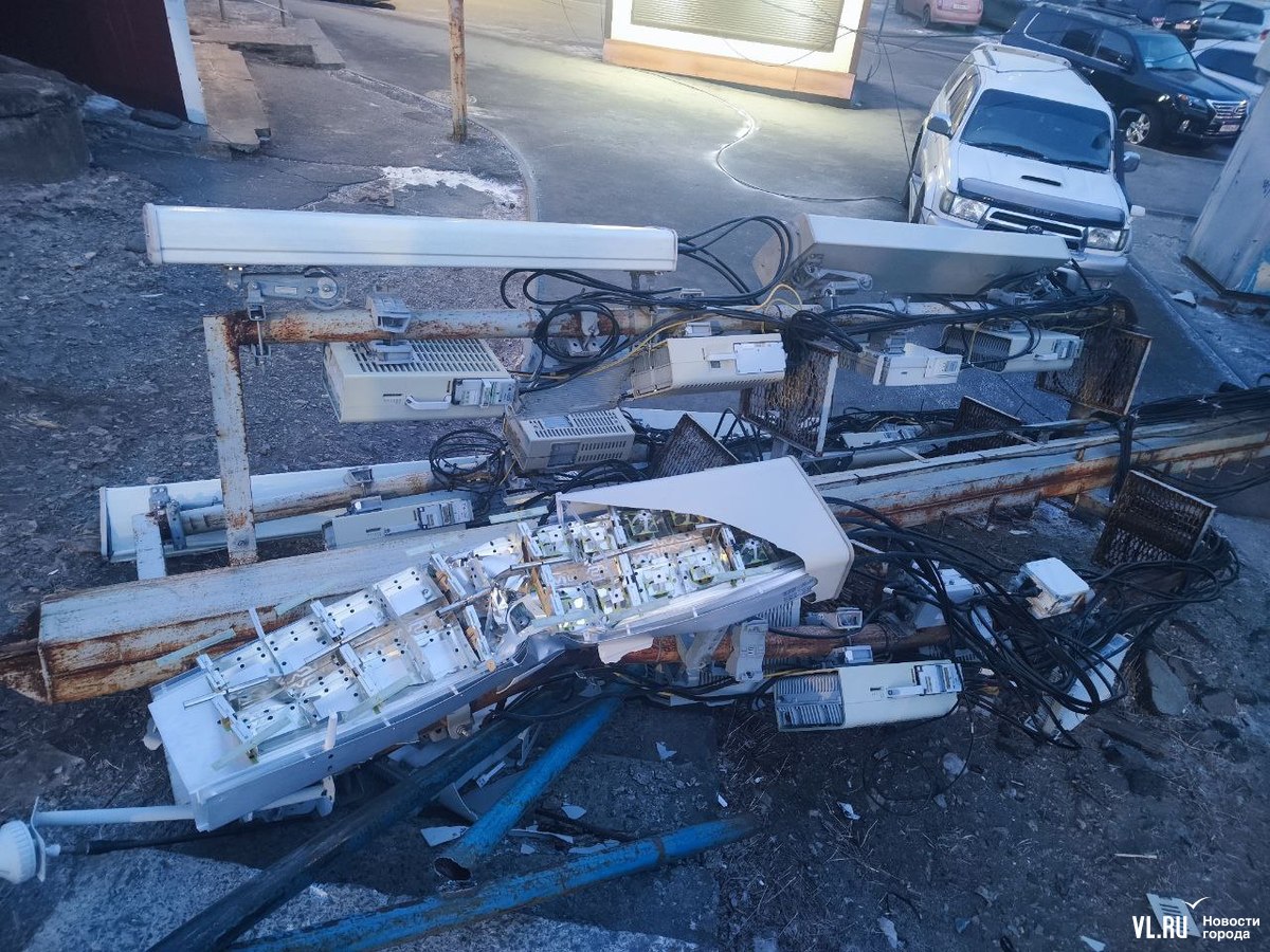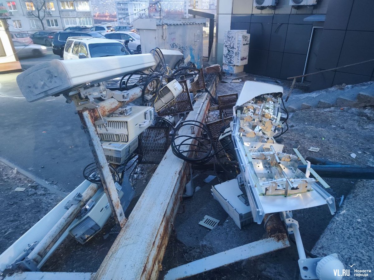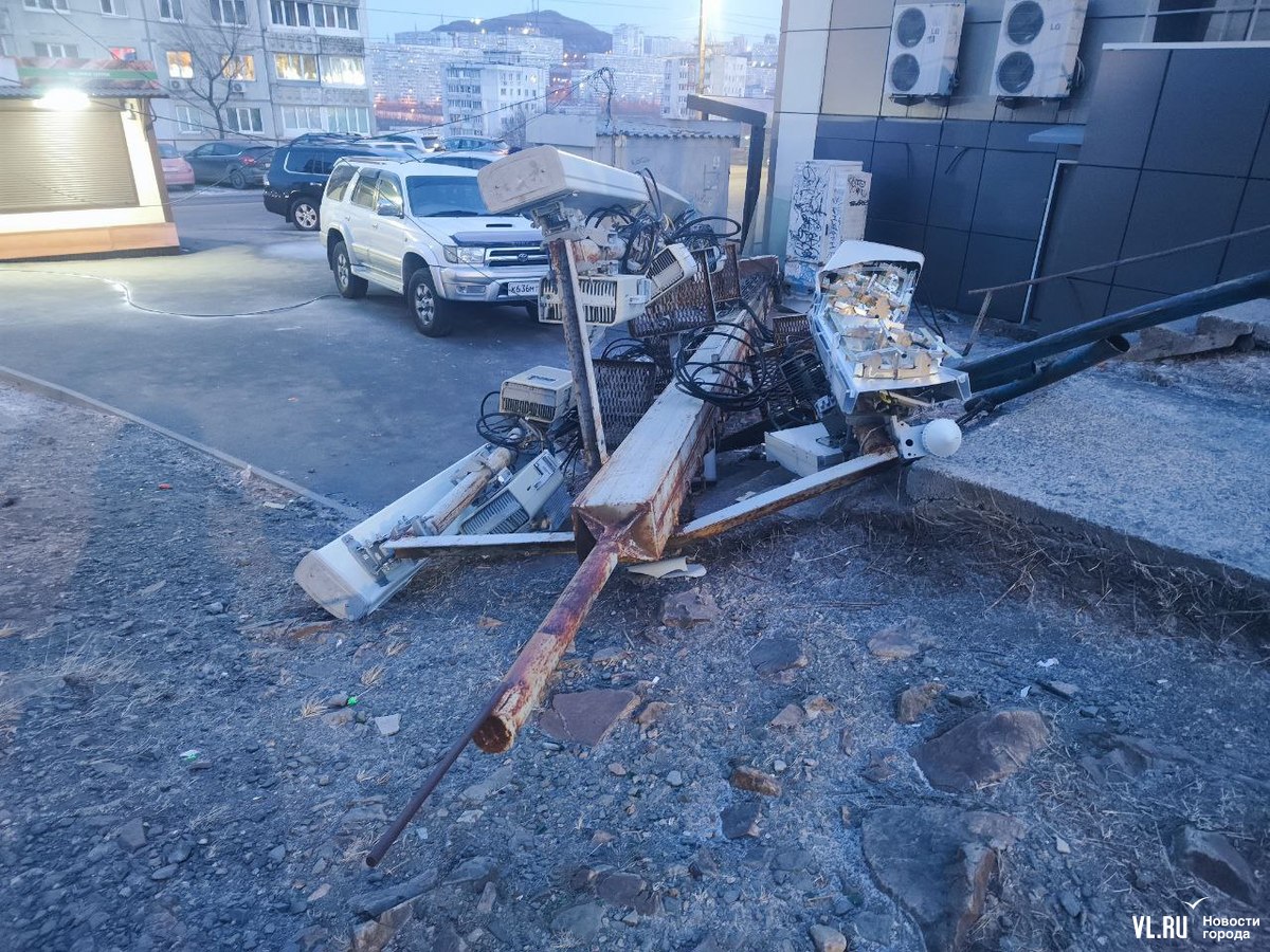 Во Владивостоке вечером 22 января от сильного ветра завалилась вышка сотовой связи, расположенная недалеко от торгового центра на Нейбута. На подаче интернета это не отразилось. Разбирать повреждённую конструкцию будут завтра. Столб перекрыл проход сразу по двум лестницам. Читатели Новостей VL.ru поделились фото с места происшествия.