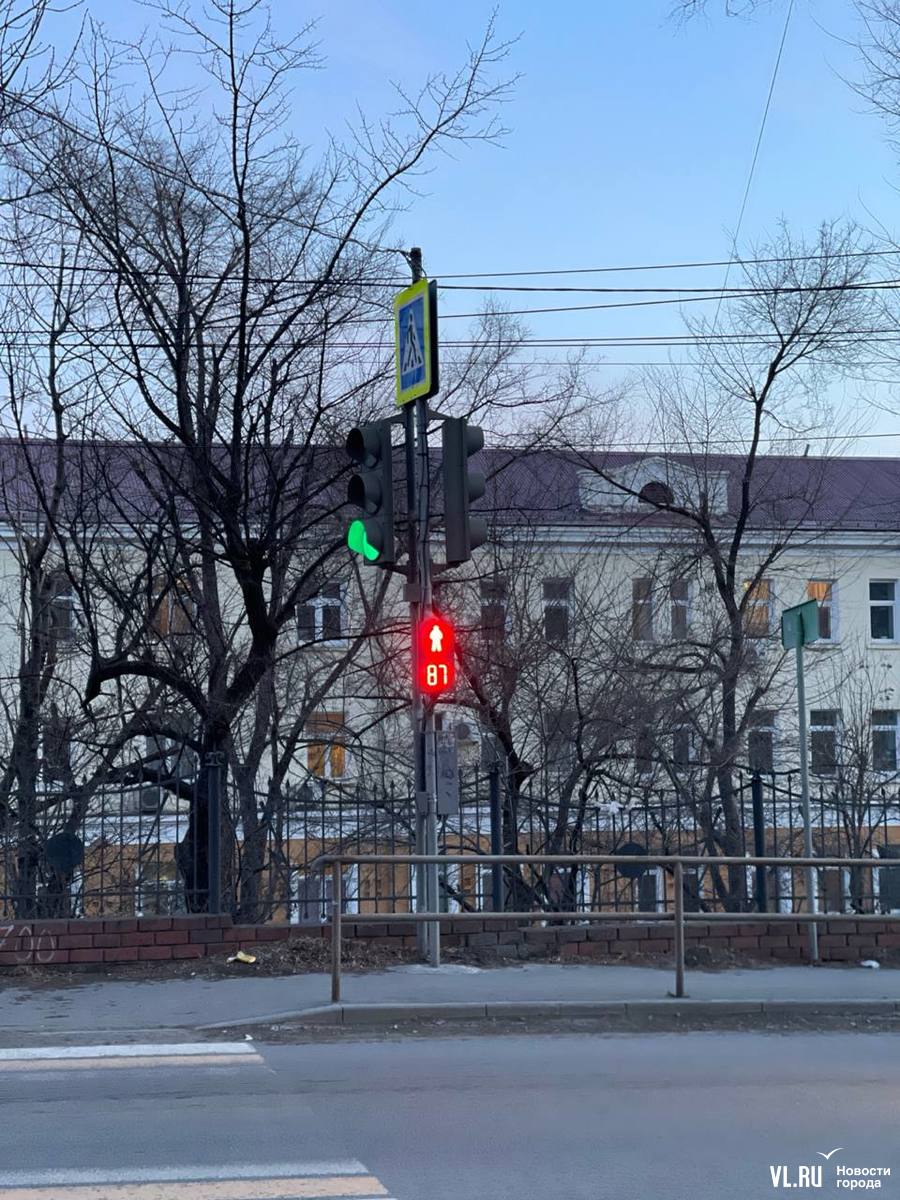 На Верхнепортовой, 32 во Владивостоке установили кнопки вызова пешеходной фазы светофора перед регулируемым пешеходным переходом. Теперь при её нажатии зелёный свет для пешеходов загорается буквально через пару секунд. Однако, если кнопку не нажимать, через несколько минут ожидания на табло светофора появляется обратный отсчёт, по завершении которого автомобилям продолжает гореть зелёный. Так что пешеходы, которые не заметят кнопку (а она довольно незаметна), могут ждать зелёного света бесконечно долго.