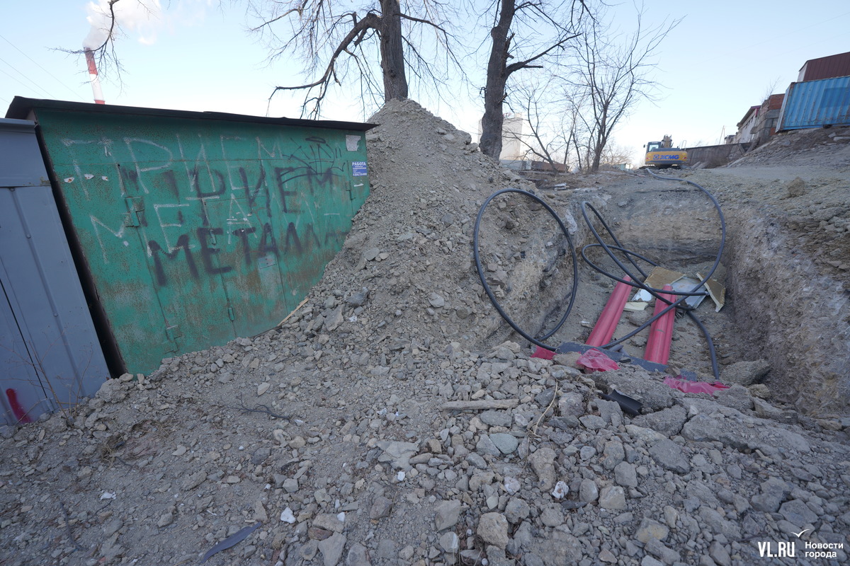 Подземный кабель прокладывают подрядчики ДРСК. Начинаются работы возле ТЭЦ-2, затем коммуникации потянут по Сахалинской вниз, частично по Борисенко и выведут на Патрокл, где в этом году уже вырубали дубы под другую линию, «ВТЭЦ 2 – Загородная – Улисс – Голдобин». Сейчас раскопки идут на территории трёх гаражных кооперативов, существующих уже более 50 лет, – это «Дельфин», «Союз» и «Восход».