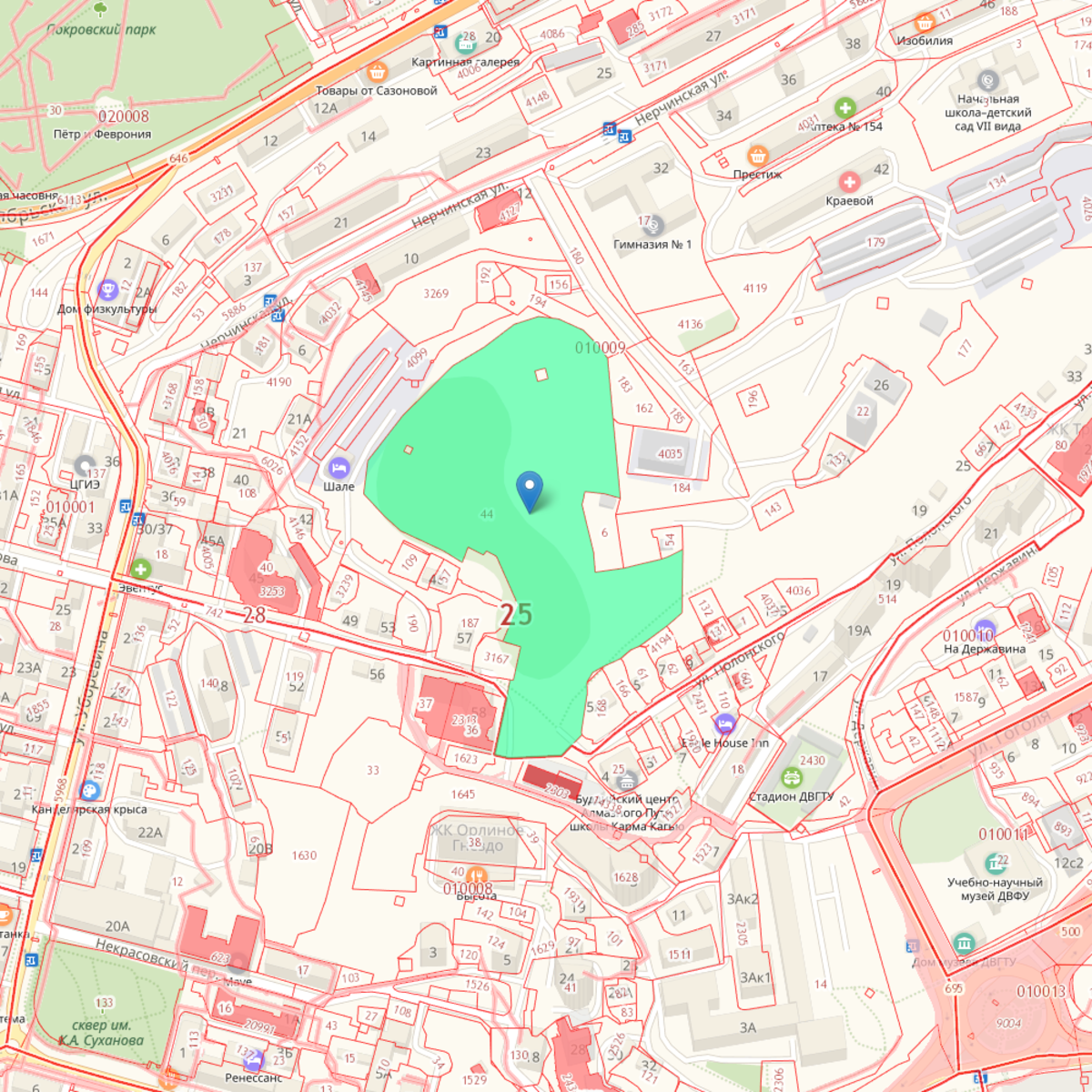 А вот с территорией на Орлиной сопке 25:28:010009:44 площадью 4,25 га, которая тоже выставлялась на ДОМ.РФ в 2019 и 2022 годах под парк, произошли некоторые изменения. От неё отделилось 0,52 га земли в участок с кадастровым номером 25:28:010009:4437 и разрешённым использованием – многоэтажная жилая (высотная) застройка. Градостроительную концепцию для жилой застройки с парком заказывали ещё в 2020 году. Такой стандарт комплексного развития территорий создал сам же ДОМ.РФ.