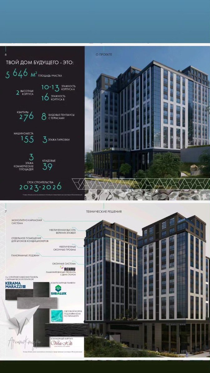 В распоряжении редакции есть презентация проекта, где говорится, что дом состоит из двух корпусов. корпус «А» – 10-13 этажей (с пентхаусами, террасами и патио), корпус «В» – 16 этажей. Квартиры от 27,5 кв. м до 116 кв. м. В домах 276 квартир, 155 машино-мест (3 этажа паркинга), 39 кладовых, 3 этажа парковки, библиотека, потолки 3,1 – 3,4 м, закрытый двор и променад и центральный парк района. В презентации, правда, указан другой срок сдачи – 1-й квартал 2026 года. Цена квадратного метра будет начинаться от 206 тысяч рублей.