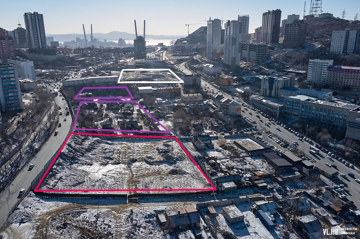 Проект реновации Голубиной Пади был первой ласточкой во Владивостоке, поэтому, в отличие от «Дальпресса», право её застройки не реализовали на торгах единым лотом. В итоге четыре проекта, которые уже готовятся к строительству, это примерно половина всей территории. Остальное – это объекты Дальневосточного таможенного управления за забором, корпус ВВГУ, несколько офисных зданий, мелкий бизнес, который продолжает работать, и хаотичная нарезка участков, где стояли дома и различные предприятия.