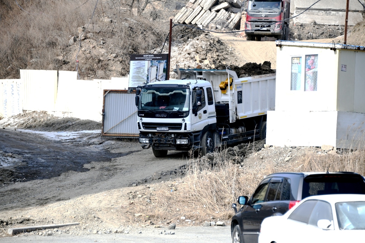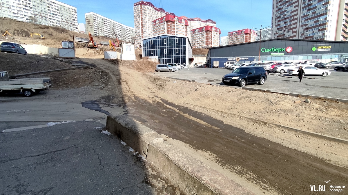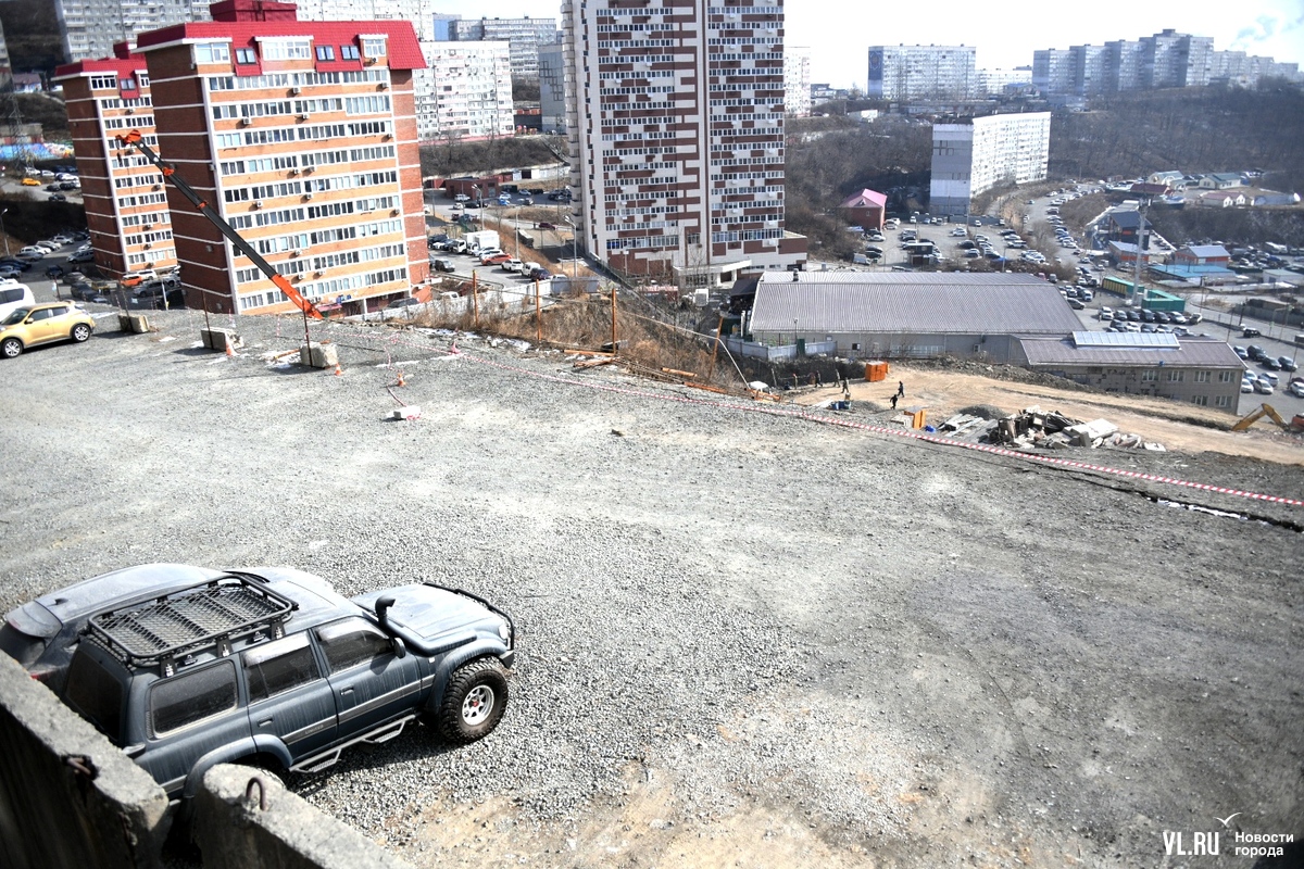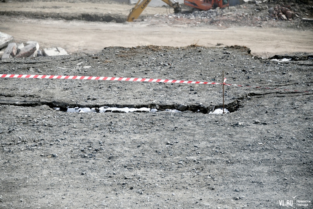 Кроме того, местные жители сообщали, что после начала строительных работ выше стройки по сопке пошли трещины, в том числе и по территории стоянки. Как раз после того, как экскаваторы стали активно вынимать и вывозить грунт, подкапывая сопку в сторону многоэтажек на Ладыгина. Как убедился корреспондент Новостей VL.ru, наверху действительно большие трещины, площадь стоянки из-за этого сократилась. Однако представитель компании на это ответил, что образовавшаяся трещина находится в пределах земельного участка застройщика.