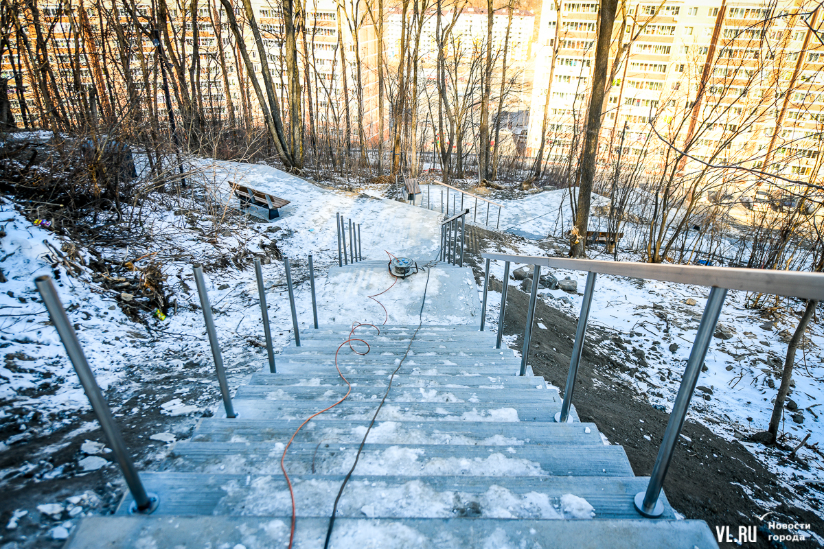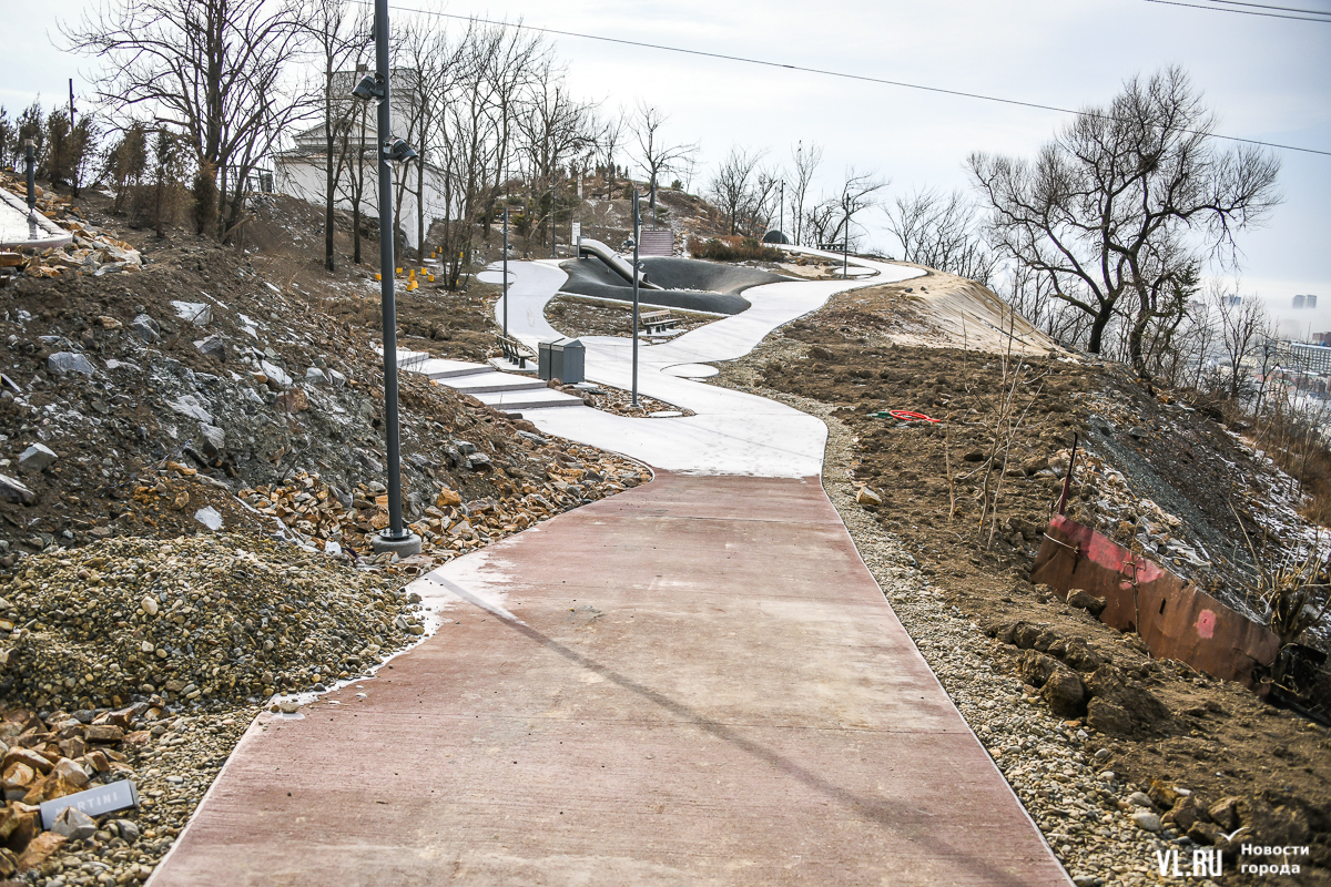 Ещё один проект благоустройства, на который выбор пал в конце 2022-го, – парк в Снеговой Пади. Из-за того, что территория большая, завершили только первый этап благоустройства леса. Пока что сделали несколько длинных лестниц с перилами, пешеходные дорожки из бетона, скамейки, урны и фонари освещения. Цена контракта выросла с 48,57 млн до 60,25 млн рублей, за работу взялся «Технострой ДВ», но и с ним в итоге расторглись по соглашению сторон, но при этом почти полностью оплатили (за вычетом двух копеек). Правда, даже те работы, что выполнял подрядчик, не были завершены вовремя – помешали найденные мины, пришлось продлевать договор до декабря. Опасения местных жителей, что посетители парка запаркуют им единственную дорогу, похоже, особо не подтвердились – толп желающих погулять по недостроенному парку пока не видно.