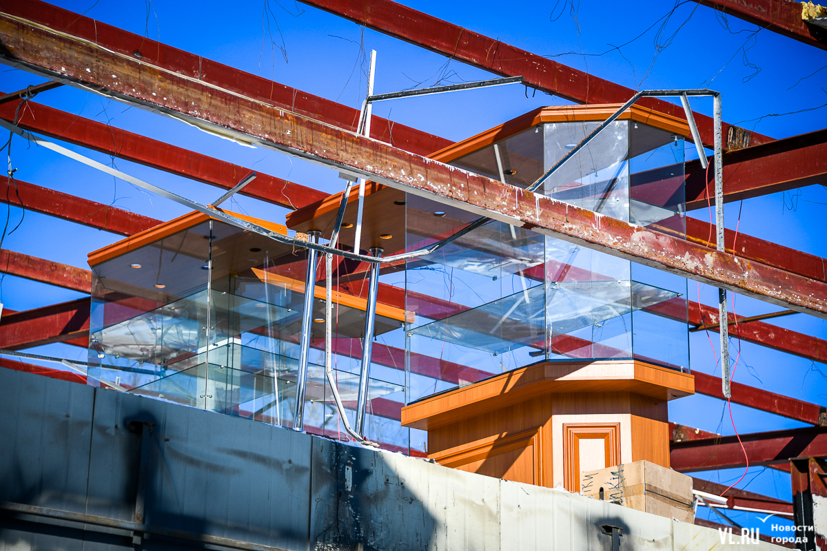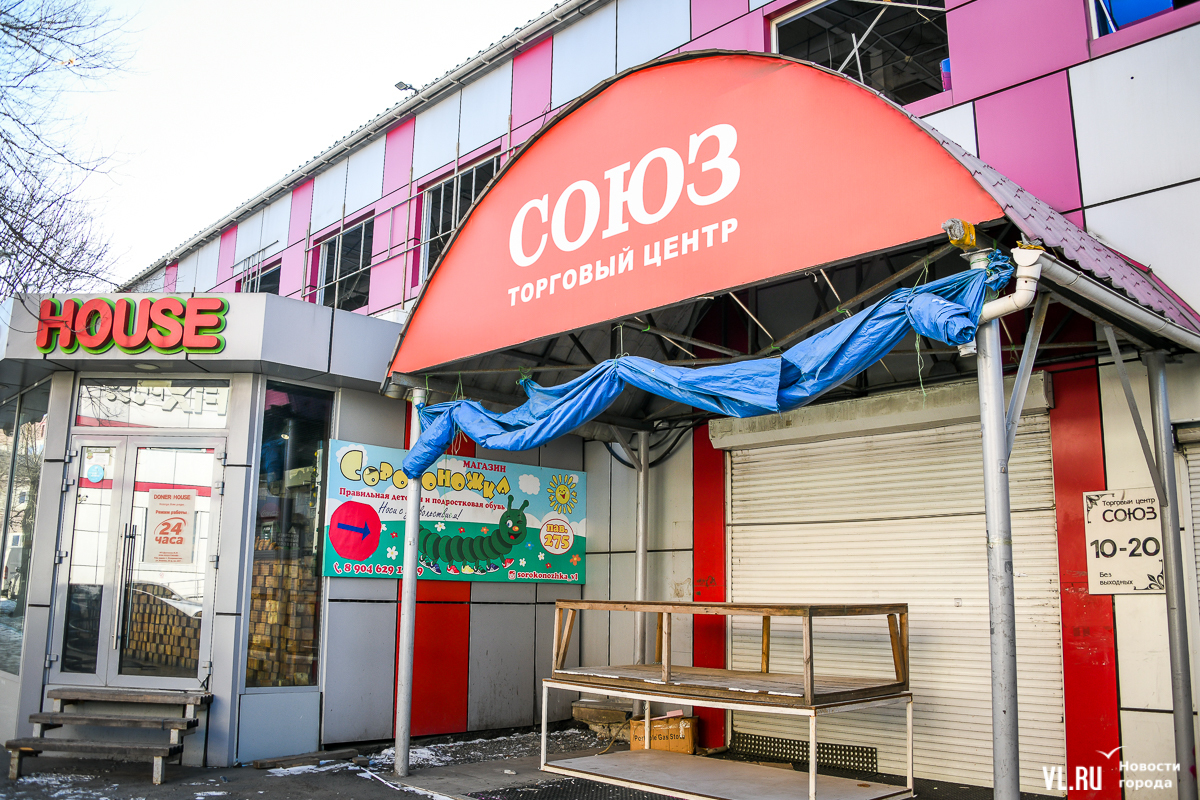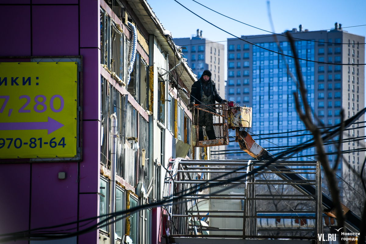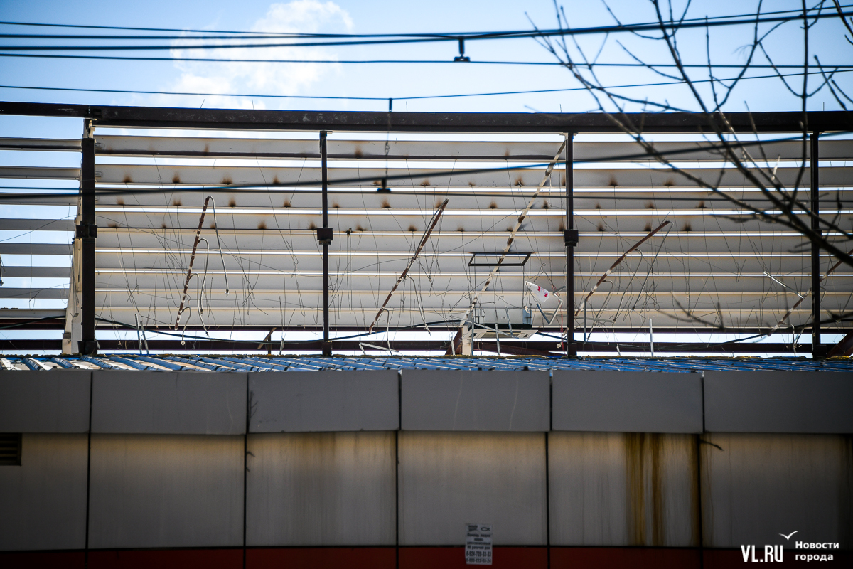 Корреспондент Новостей VL.ru застал рабочих за процессом, в люльке подъёмника. На сегодняшний день у ТЦ «Гранд» почти полностью разобрали второй этаж. Торчат только металлические рёбра, рабочие стопками складывают демонтированные утеплённые панели. Кое-где можно заметить не вывезенные стеклянные витрины. У «Союза» уже нет окон на втором этаже – оба здания разбирают параллельно. Со стороны Фадеева к «Союзу» пристроены маленькая закусочная и парикмахерская. Сотрудники говорят, что в ближайшее время будут «отстыковывать» свои пристройки, но далеко убирать не планируют – оставят тут же на тротуаре. Оба ТЦ обнесены забором так, что между ними больше не осталось прохода. Тротуар вдоль трамвайных рельсов тоже перекрыт, пешеходы идут ближе к дороге.