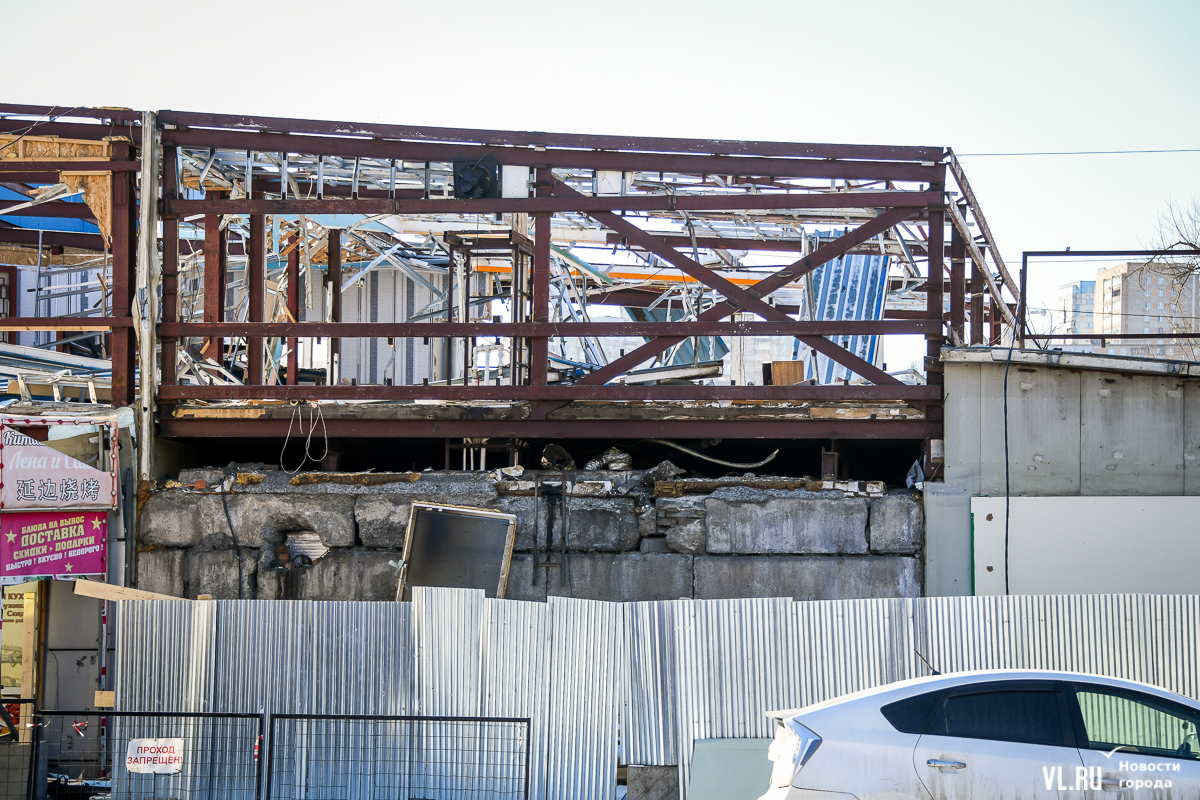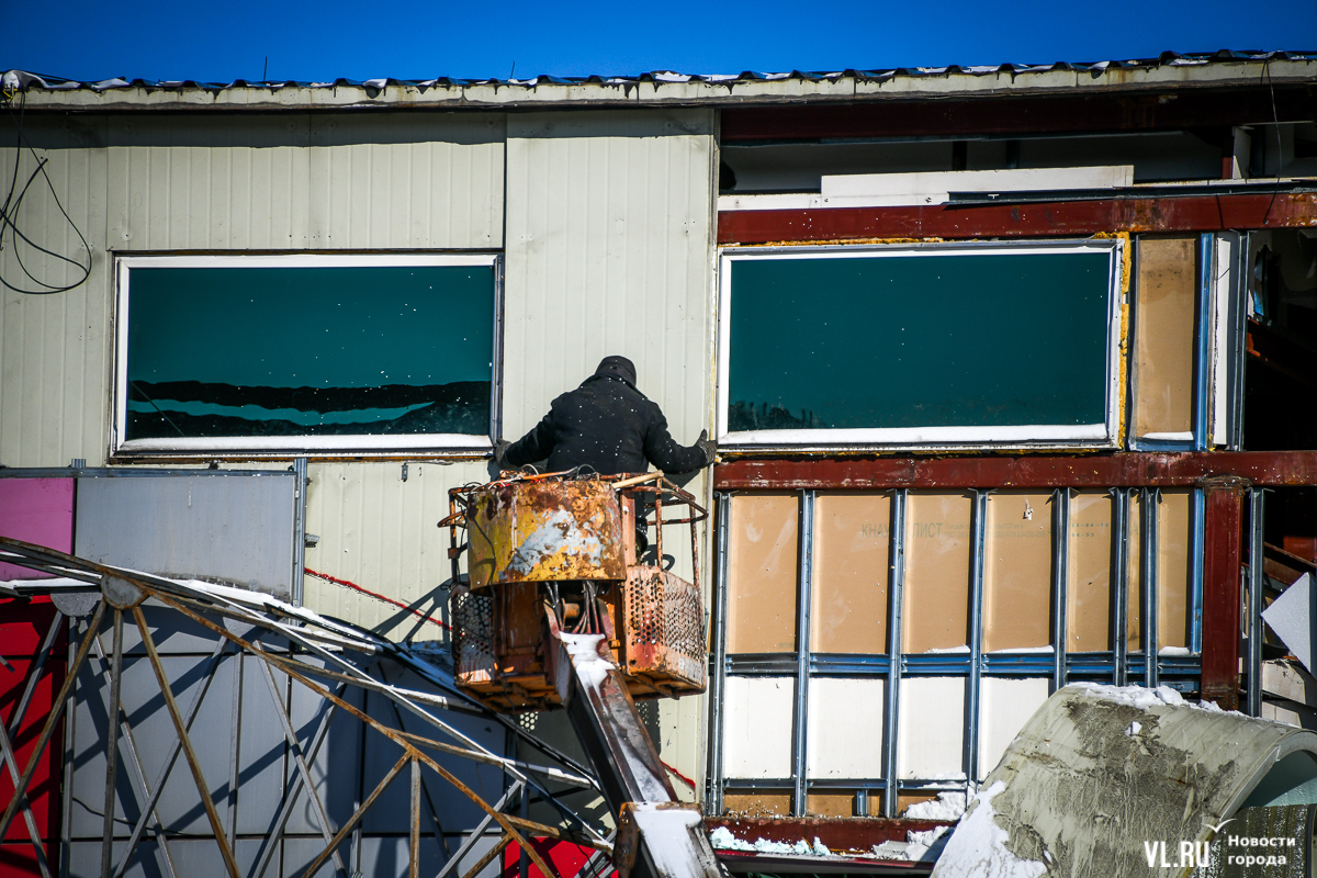 Представители «Остов Инжиниринг» подтвердили Новостям VL.ru, что демонтаж объектов проходит в штатном режиме: всё идёт согласно технологическому процессу без применения тяжёлой техники. Однако даты окончания работ нет. Ранее подрядчик говорил, что нужен месяц, но прошло уже два, а не снесено ещё и половины. Подробнее разговаривать про сам процесс строители отказались. Как говорят работники рынка, каждый день видят на демонтаже всего около пяти человек – одного прораба и четырёх работяг. На вопрос, когда снесёте, говорят: «Скоро». Видимо, сроков им не ставили, или эта задача не приоритетная для компании.