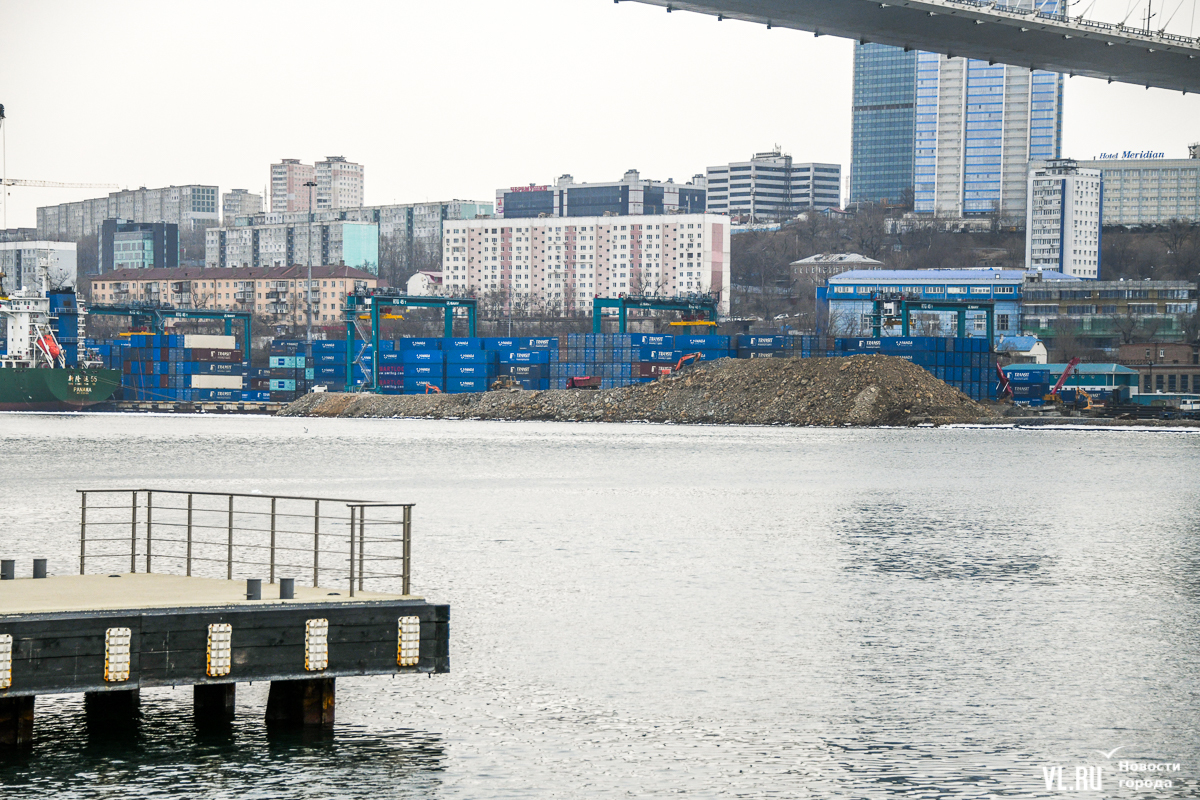 Жители Владивостока заметили насыпанную гору грунта возле Золотого моста на Чуркине – как выяснила редакция Новостей VL.ru, здесь готовят участок для строительства новых причалов, контейнерной площадки и складов. Насыпь не будет сильно вдаваться в акваторию Золотого Рога, а закончить работы по отсыпке планируют к середине года.