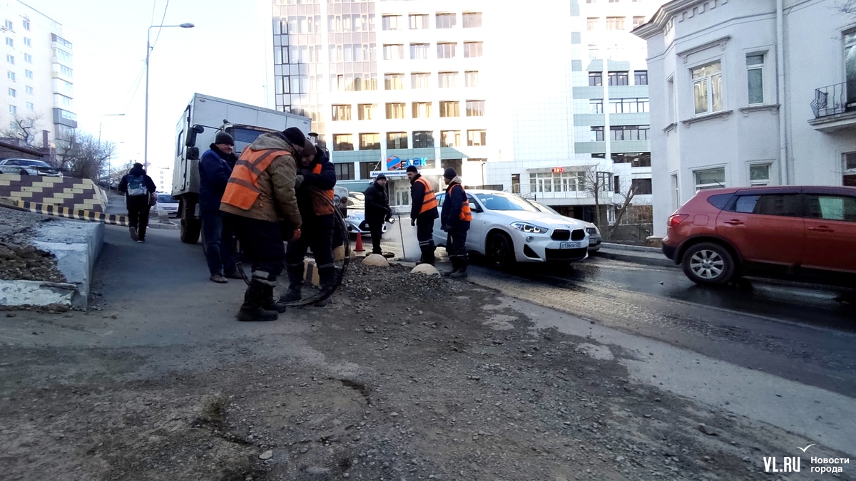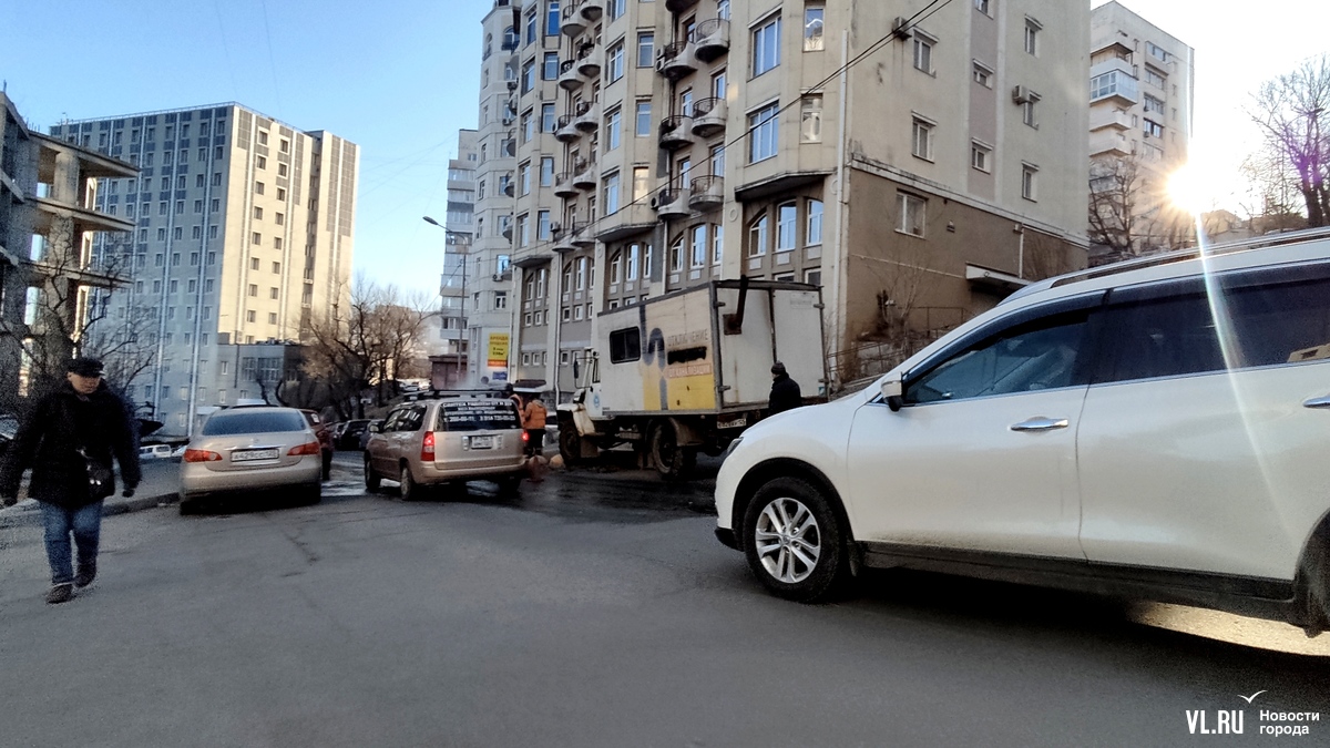 Утром в пятницу, 16 февраля, улицу Тигровую во Владивостоке затопило канализацией. Аварийная бригада уже на месте. Движение по запаркованной с двух сторон улице осложнено.