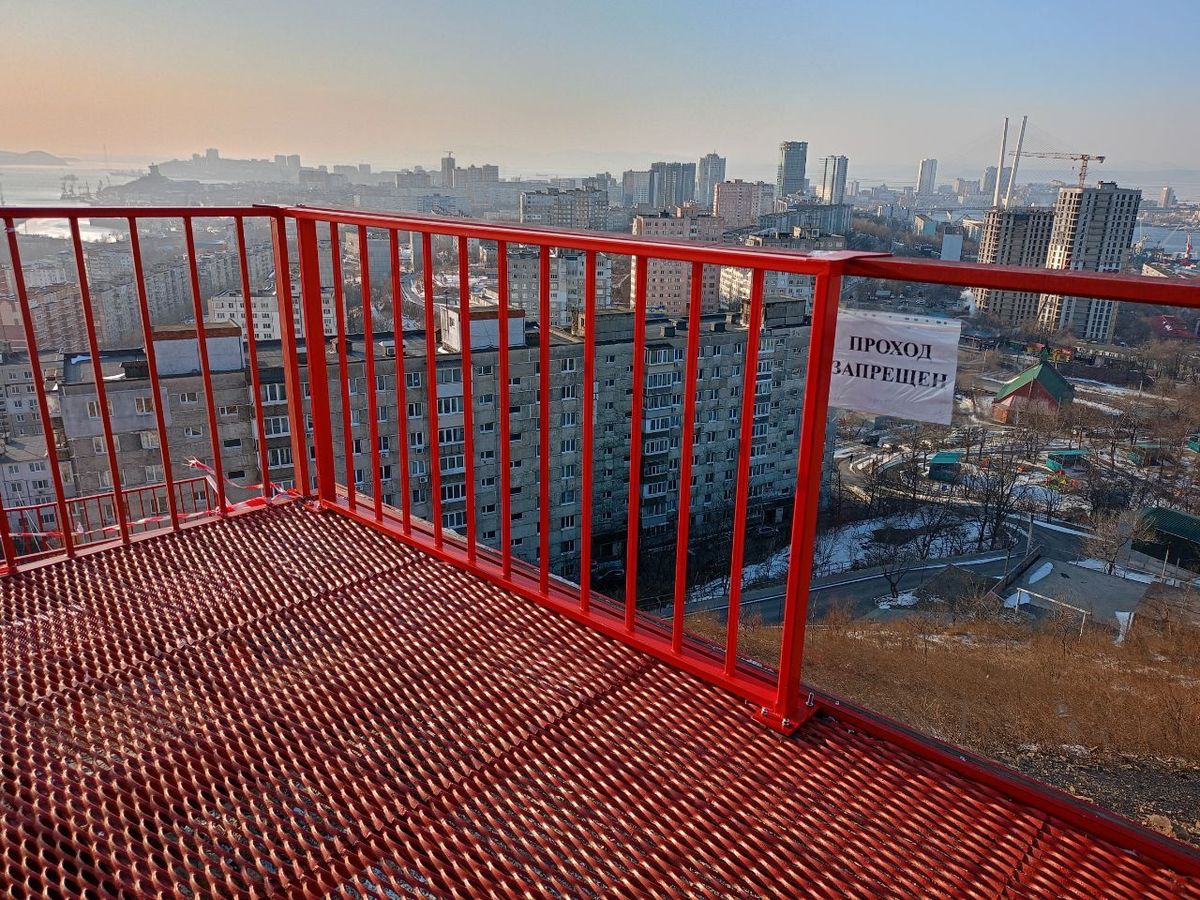 Общественное пространство на Бурачка пострадало ещё прошлой осенью. Здесь неизвестные разбили два стекла на верхней видовой площадке. Вместо них пришлось установить временную решётку, но скоро стёкла обещают вернуть на место.
