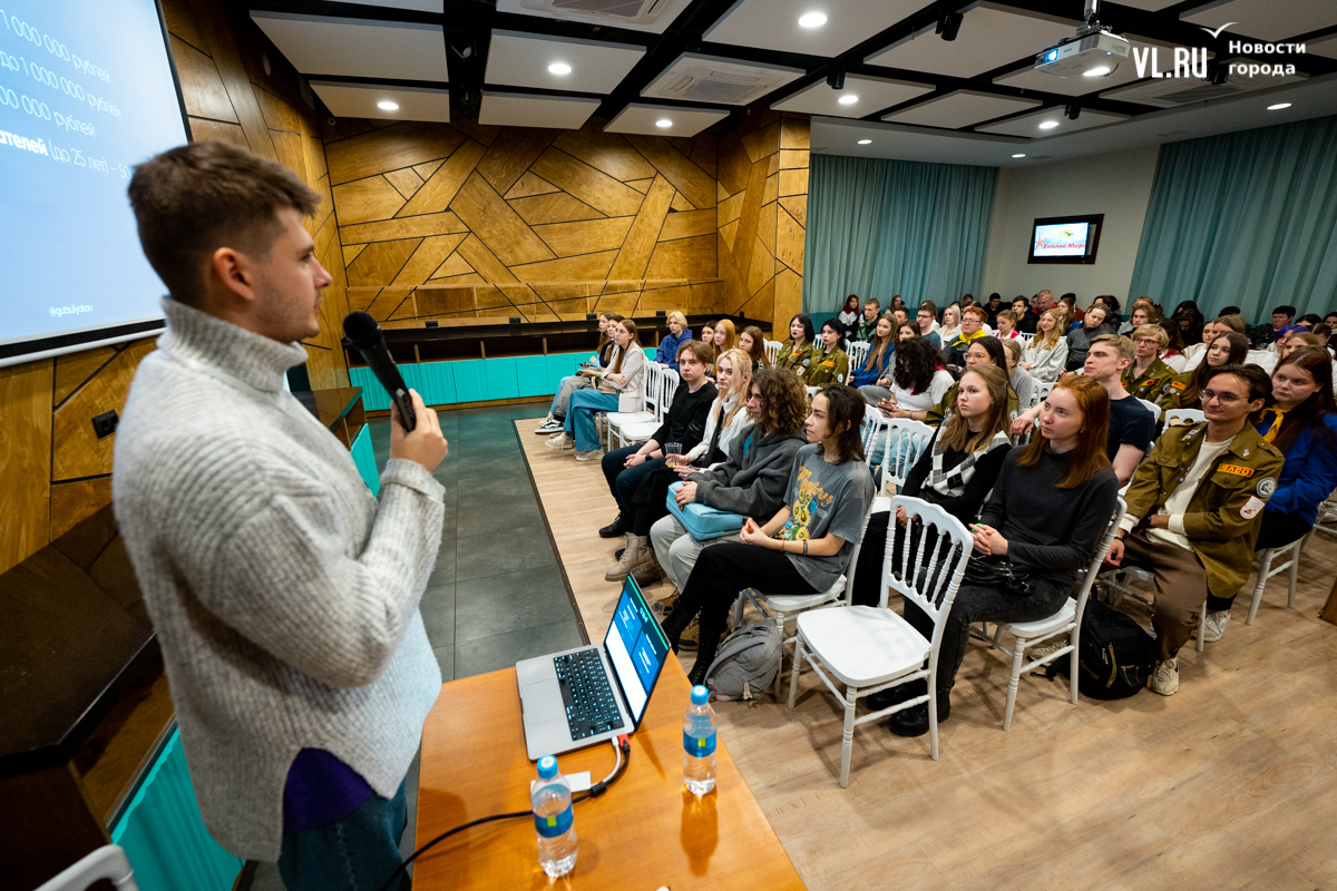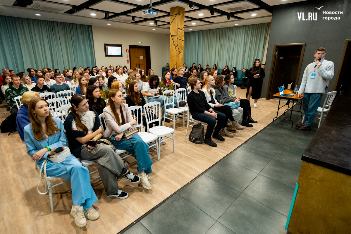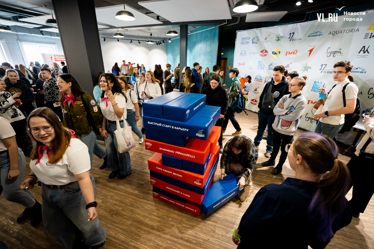 В субботу, 17 февраля, в арт-конгресс-отеле «Экватор» состоялся карьерный форум «Труд Крут» для школьников и студентов. Представители «Акватории», «Доброфлота», музея Арсеньева, «Владхлеба» и других организаций рассказали ребятам, как начать карьерный путь, где приобрести полезные навыки и набраться опыта. Компании готовы дать работу начинающим фасовщикам, пекарям, кондитерам, официантам и администраторам. А студенческие отряды зазывали ребят поработать летом вожатыми в лагерях и проводниками на железной дороге.