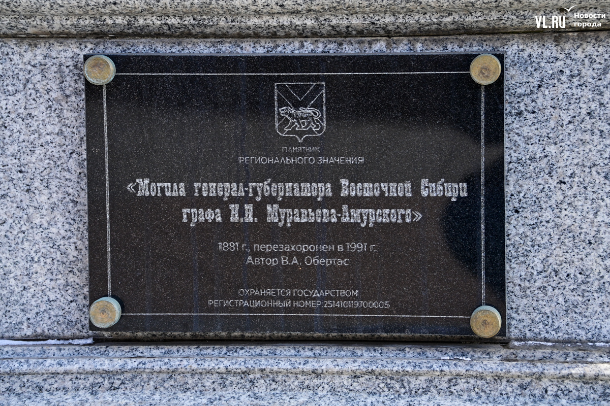 Администрация Владивостока подвела итоги торгов на реставрацию объекта культурного наследия – памятника и могилы генерал-губернатора Восточной Сибири графа Николая Муравьёва-Амурского. Постамент тщательно отмоют и вернут утраченные декоративные элементы, а на участке рядом восстановят отколовшиеся ступени и плитку.