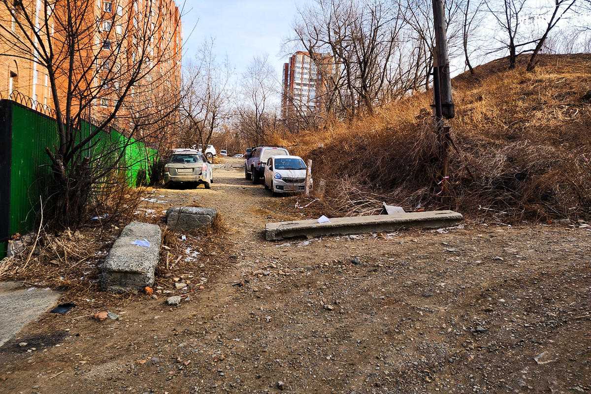«Блоки и шлагбаум тут с незапамятных времён. Местные жители поставили, чтобы никто не заезжал, и паркуются. Шлагбаум без замка, кто знает, те заедут. Раньше проезд был вообще закрыт полностью по Алеутской вдоль бывшего корпуса ДВГУ, а сейчас там даже забор снесли. Поэтому мимо 88-го дома многие объезжают пробки – с Авроровской на Океанский проспект и через Алеутскую на Авроровскую. А теперь, получается, затор можно будет обрулить ещё и через Школьный переулок», – рассказывает Дмитрий, житель Авроровской.