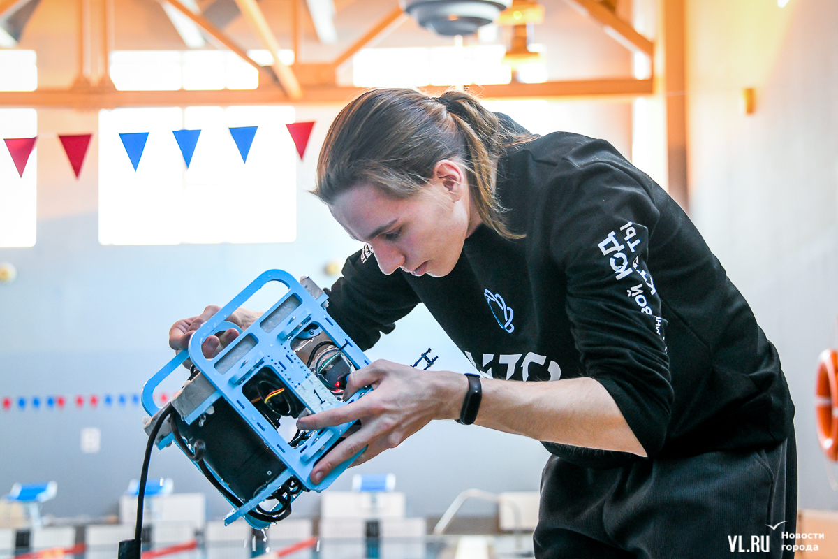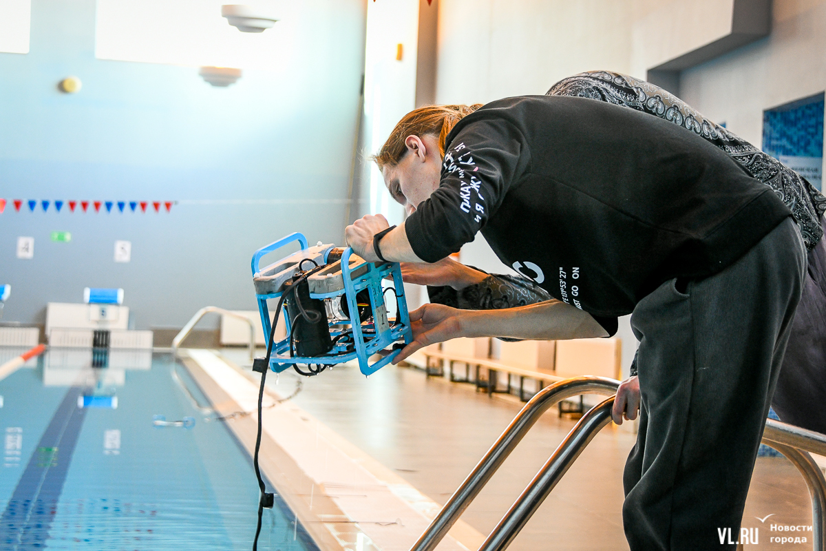 Сегодня тренировка – собранные конструкции они тестируют в воде. Налаживают алгоритмы компьютерного зрения, поверяют глубиномеры, смотрят, чтобы ничего не протекало. Можно что-то менять, паять, переделывать. А завтра – финальный прогон, и никаких исправлений. Иван Рубцов из Артёма свой глубиномер уже протестировал и, похоже, доволен.