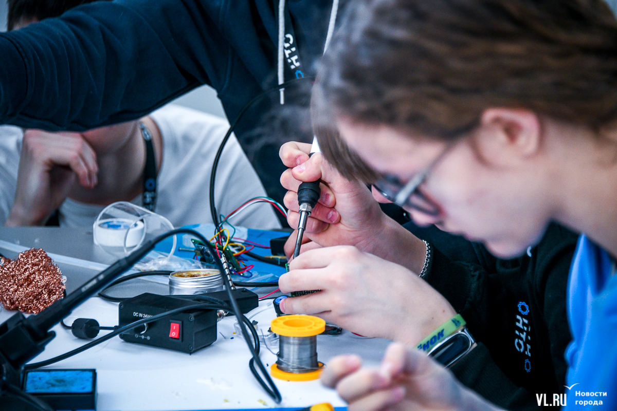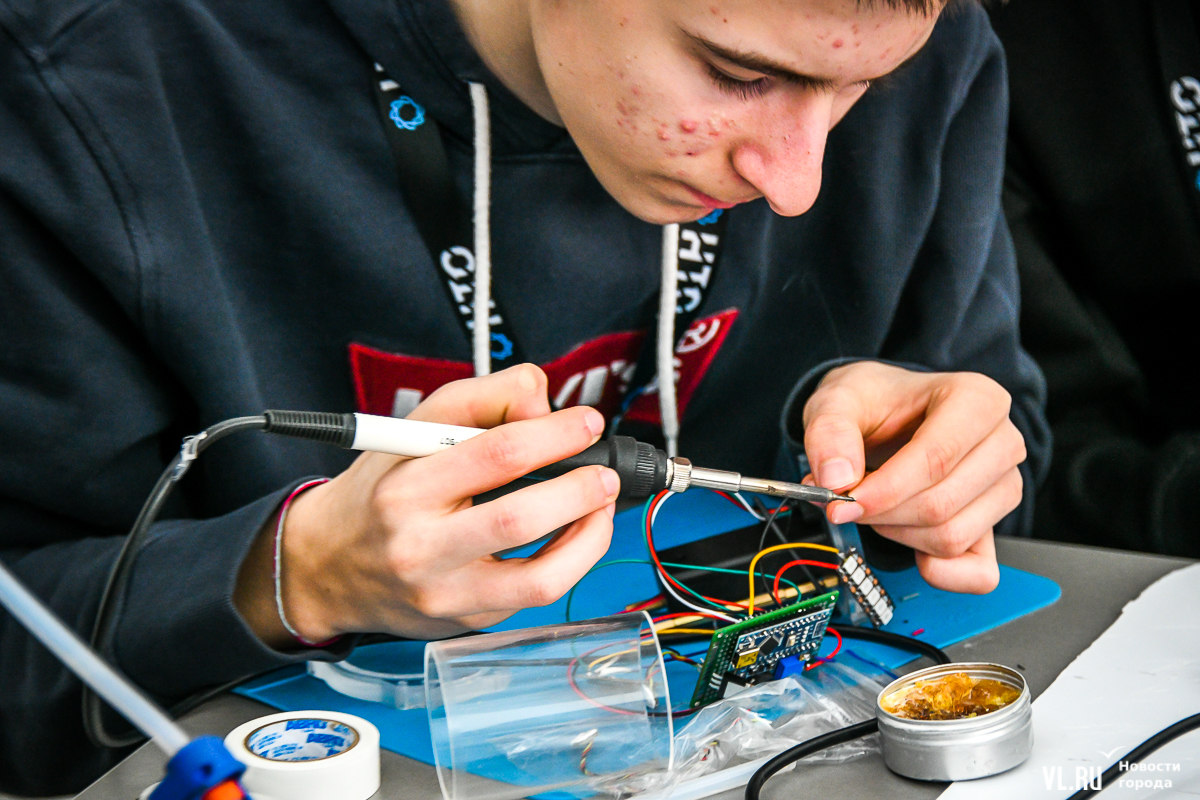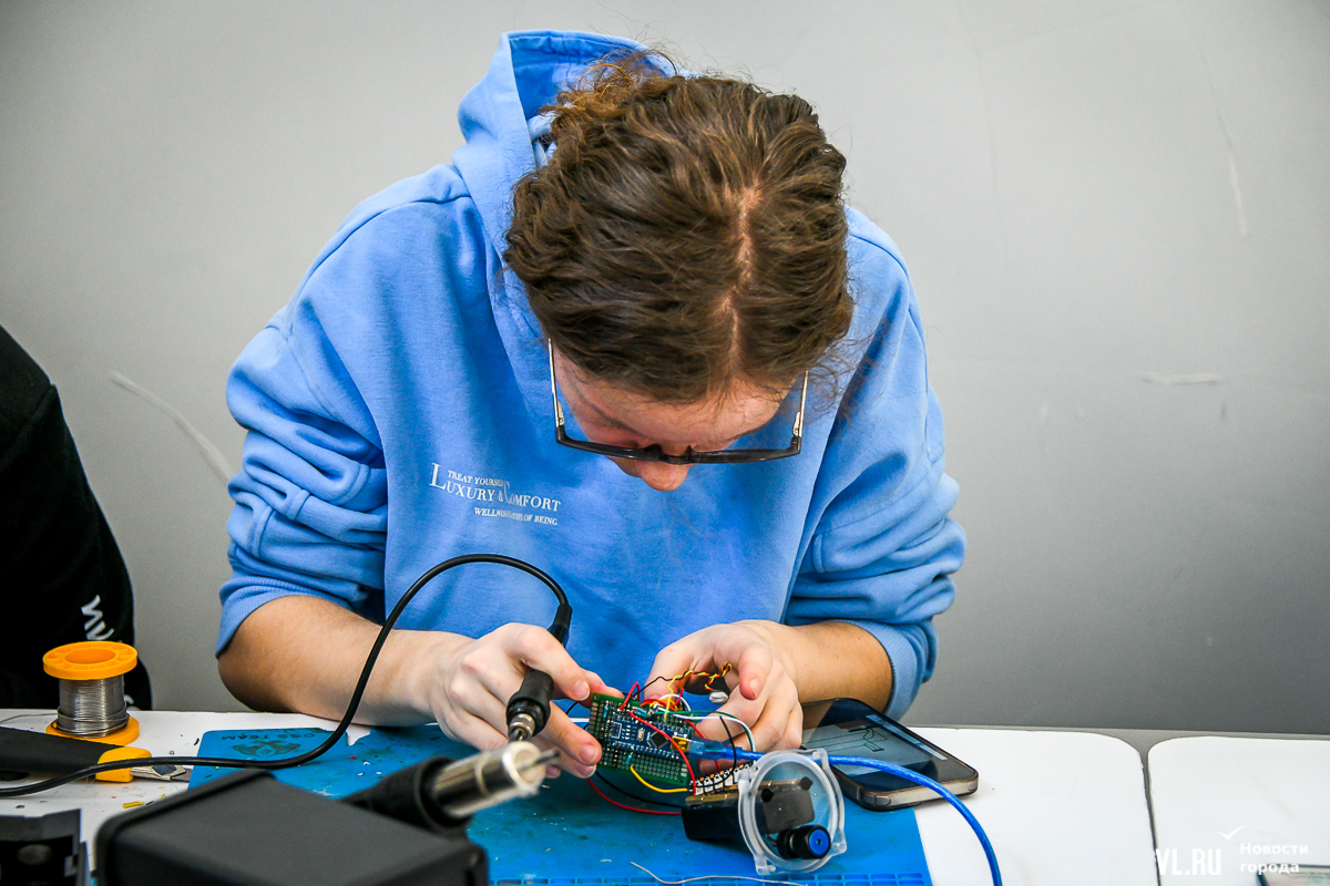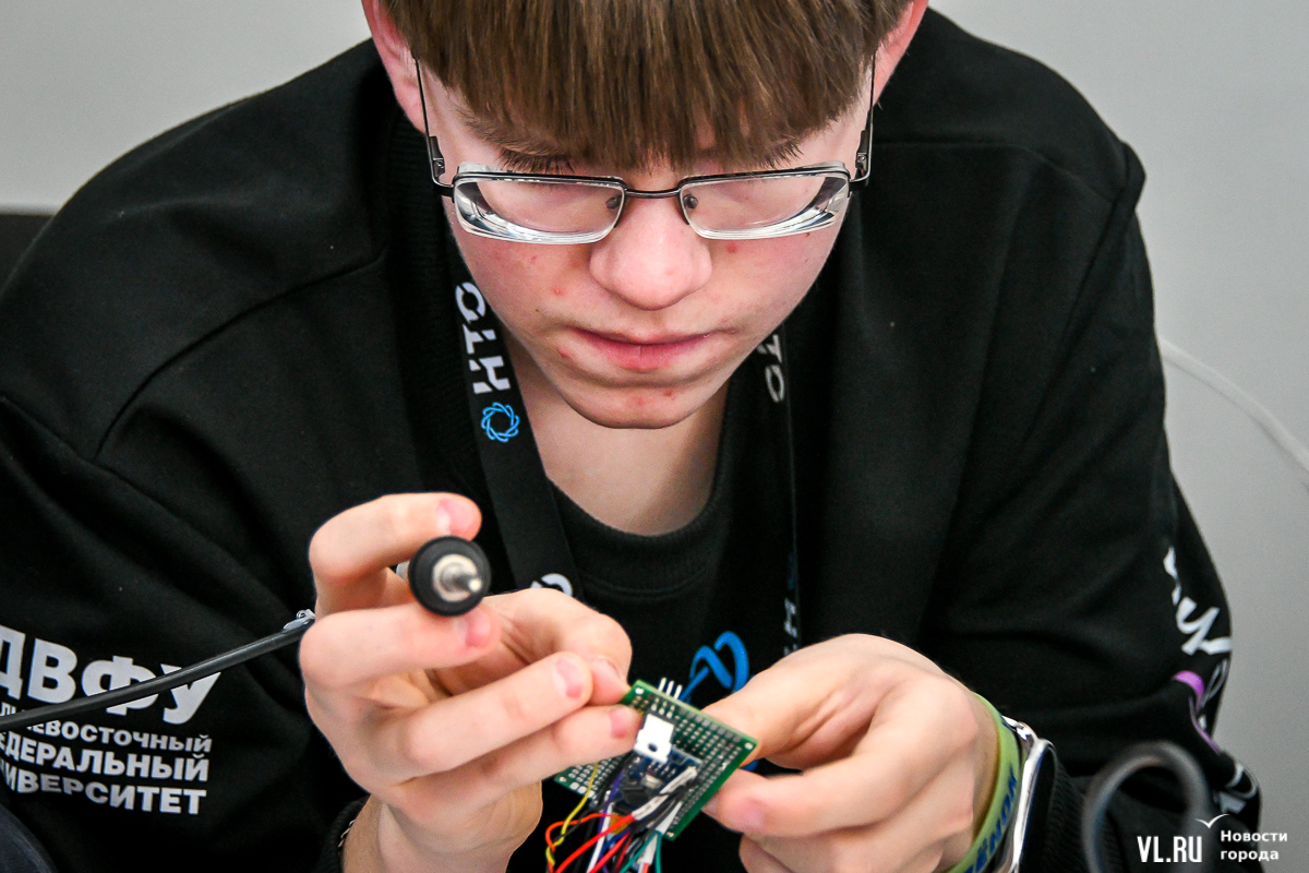 – Честно? Да. У нас команда, где все давно друг друга знают. Когда решили объединиться, был риск, что не сработаемся. Но получилось. У нас грамотно распределены роли. Задание мне под силу – сегодня как раз всё дописал, всё работает. В команде три приморца, считая меня, один из Благовещенска, один из Томска. Я десятиклассник, в этом году поступил в профильный класс в университетскую школу при ДВФУ. Планирую пойти на завод «Звезда» и развиваться в строительстве подводных аппаратов, робототехники, судостроении, судоремонте.