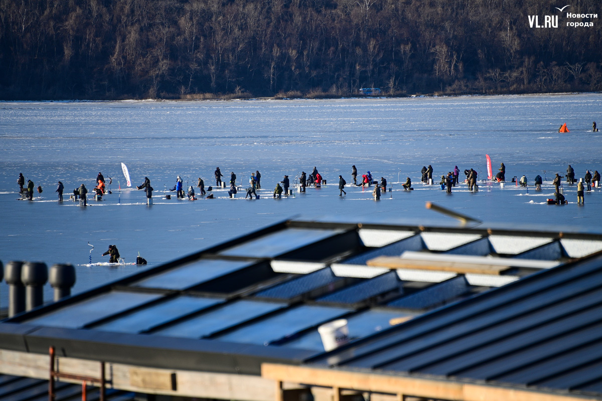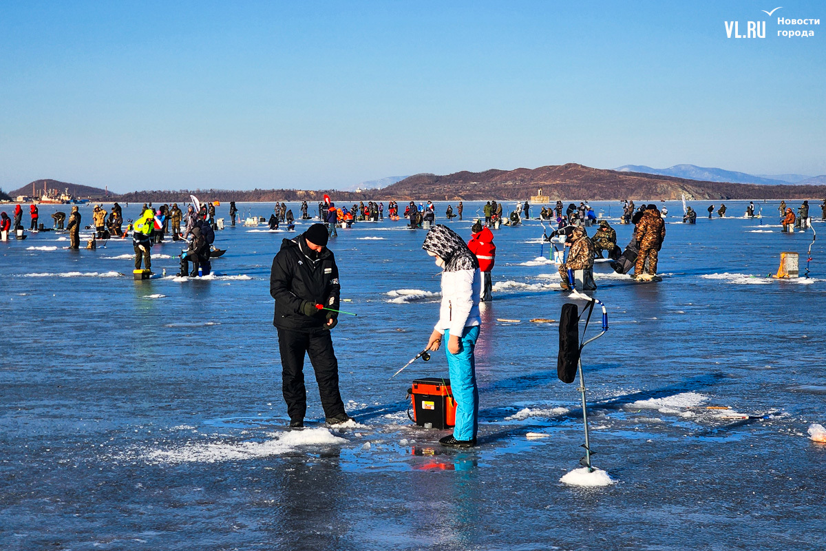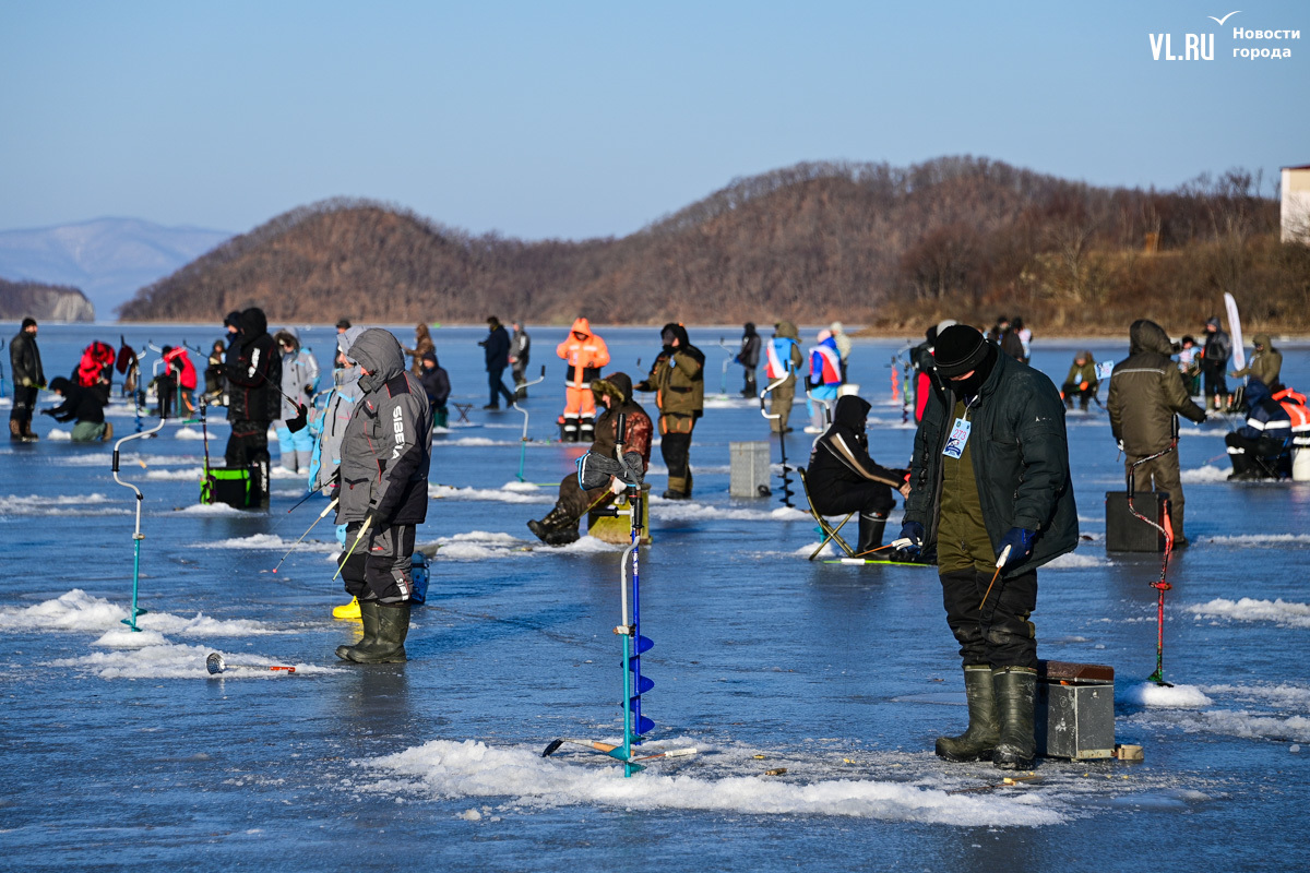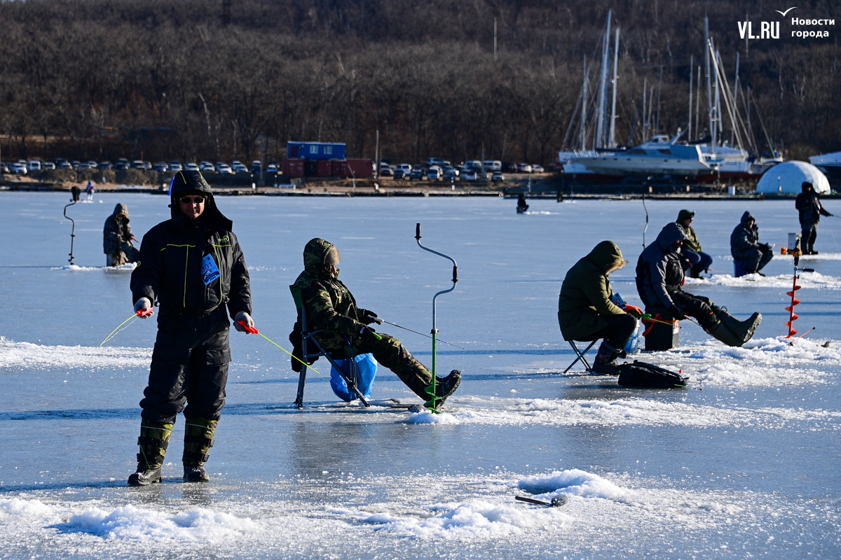 В 9 утра рыбаки уже расположились в Новике с удочками, бурами и вёдрами «Террако». Изначально организаторы планировали провести соревнования на акватории Спортивной гавани, но из-за таяния льда их пришлось перенести в закрытую бухту, где лёд прочнее. По словам организаторов, его толщина составляет от 50 до 80 сантиметров.
