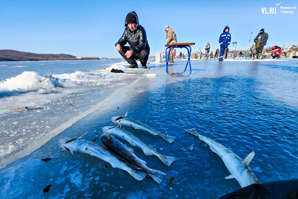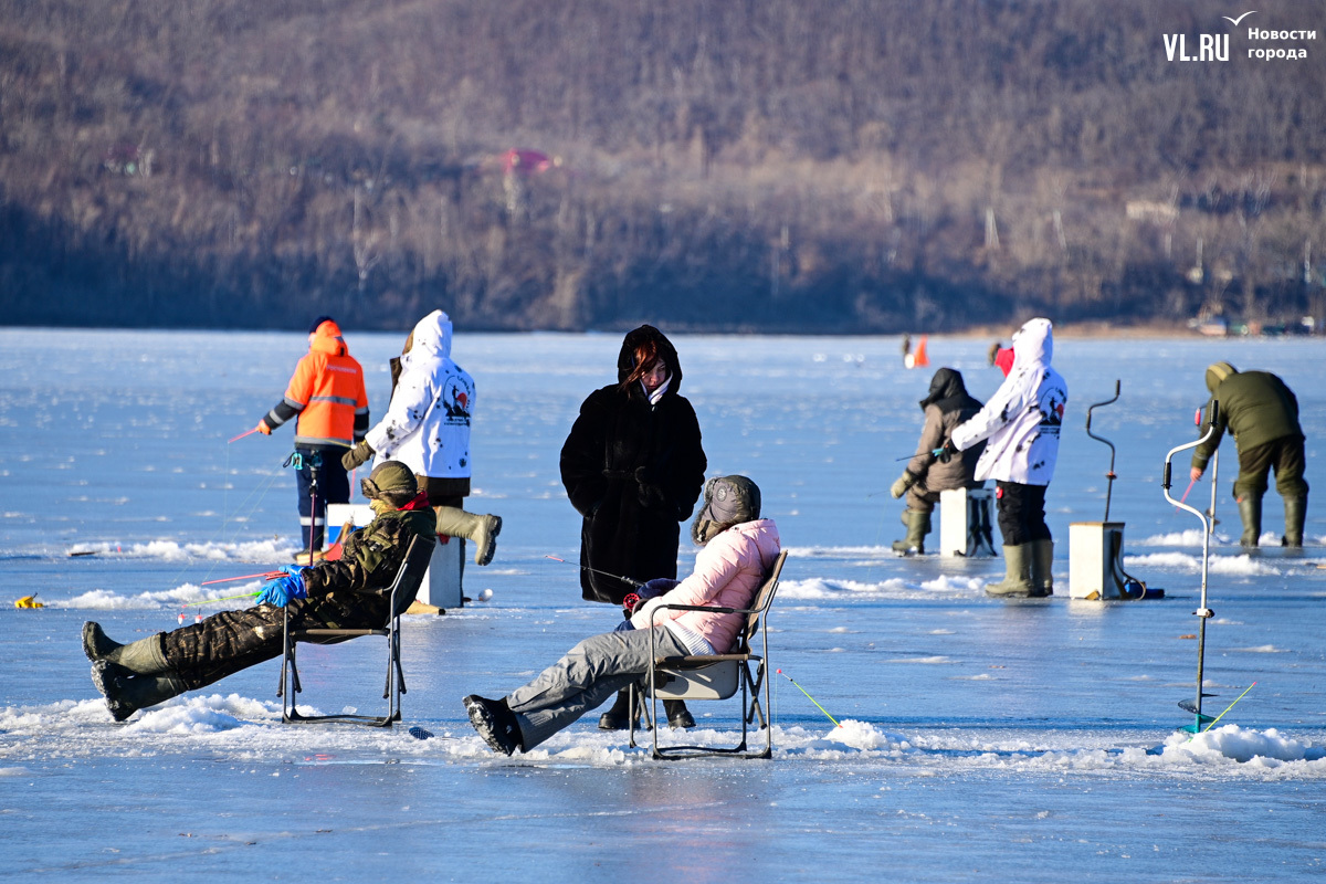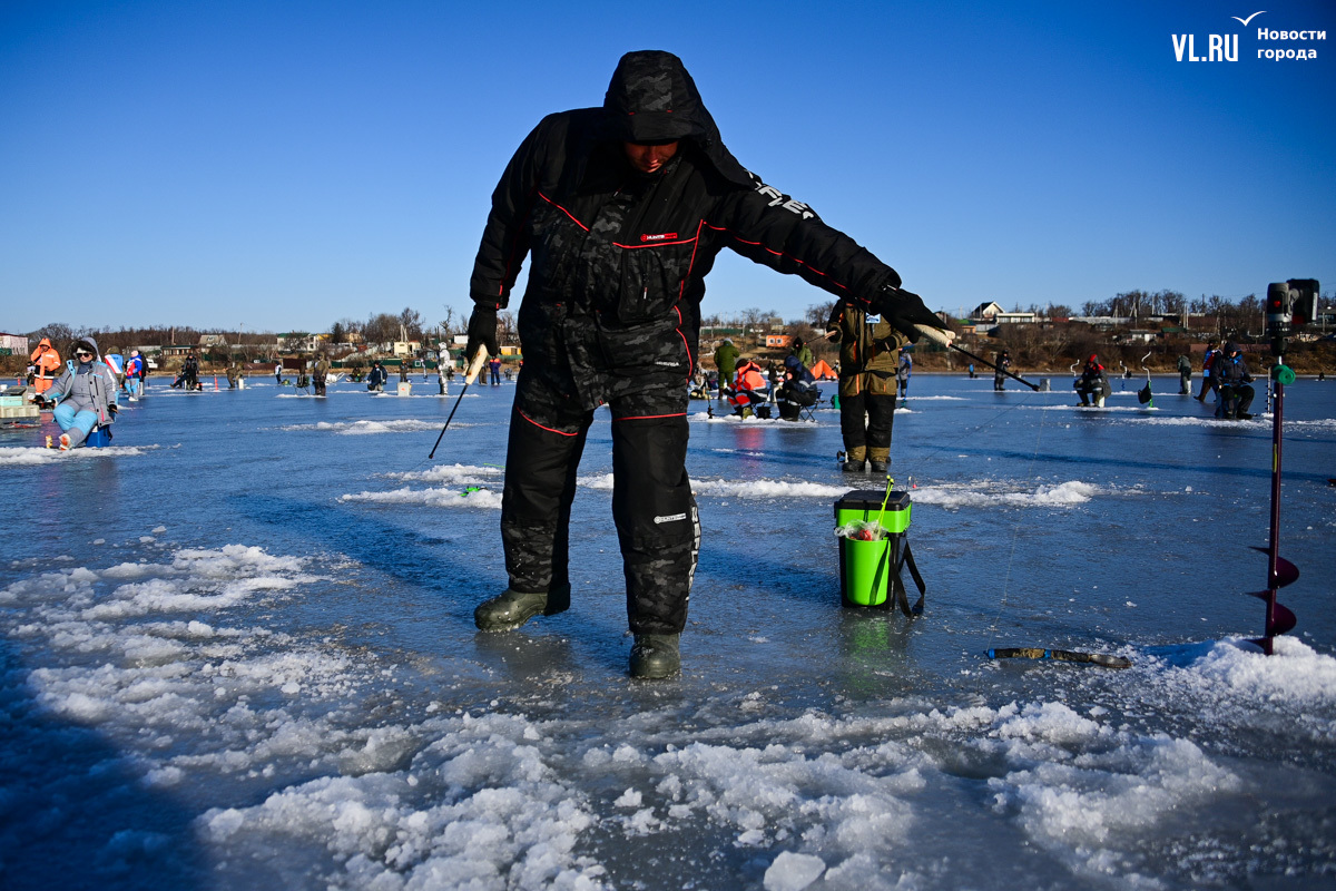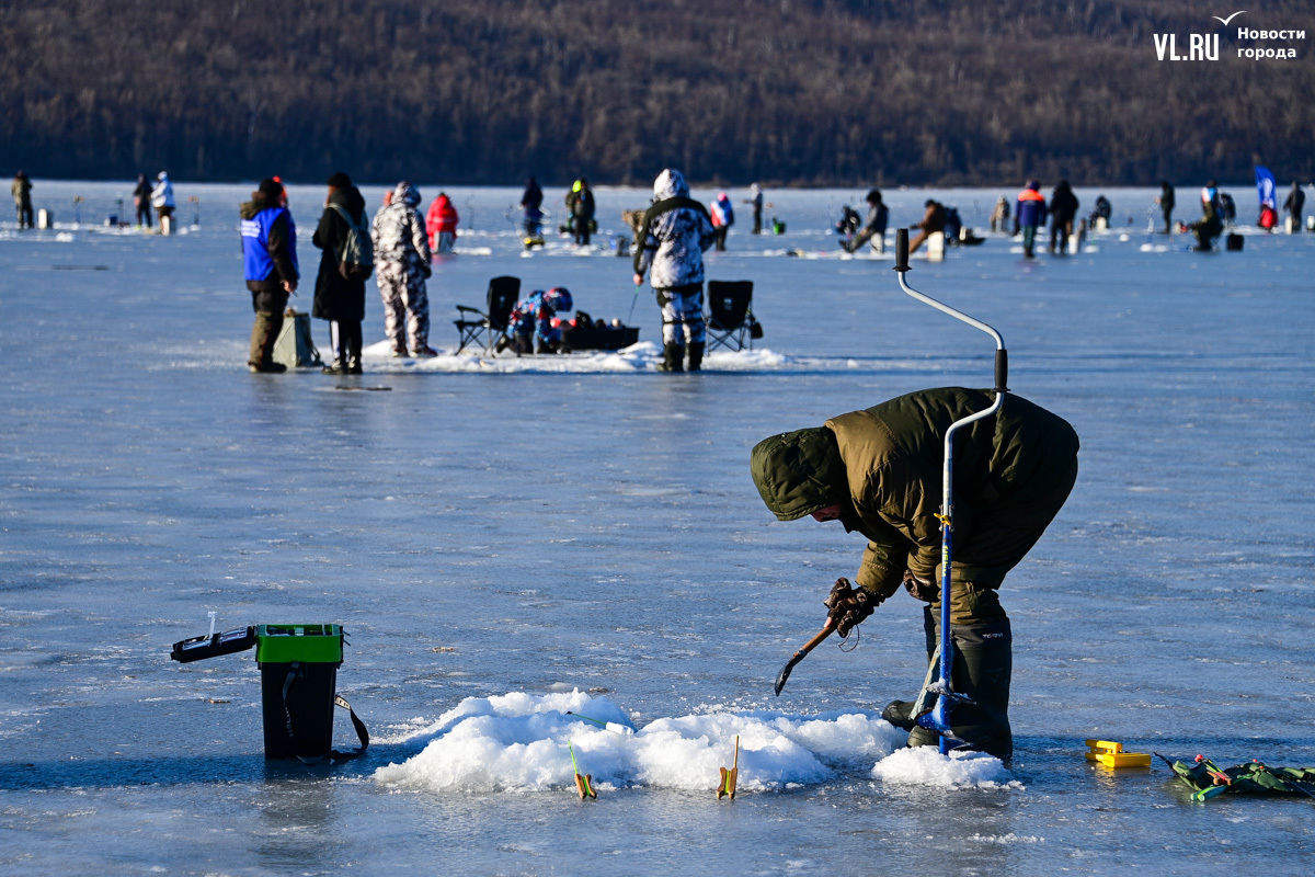 В 9 утра рыбаки уже расположились в Новике с удочками, бурами и вёдрами «Террако». Изначально организаторы планировали провести соревнования на акватории Спортивной гавани, но из-за таяния льда их пришлось перенести в закрытую бухту, где лёд прочнее. По словам организаторов, его толщина составляет от 50 до 80 сантиметров.