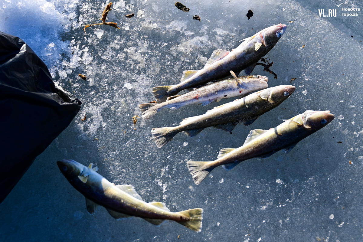 Не у всех навага, которую преимущественно ловят в бухте Новик, шла хорошо – у кого-то лежала одна штука, у кого-то – две, кому-то попадались бычки. Реже, смеясь, рыбаки вскрикивали «Корюшка!» Но одному рыбаку удалось за только первые полчаса выловить пять наваг.