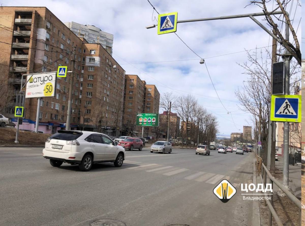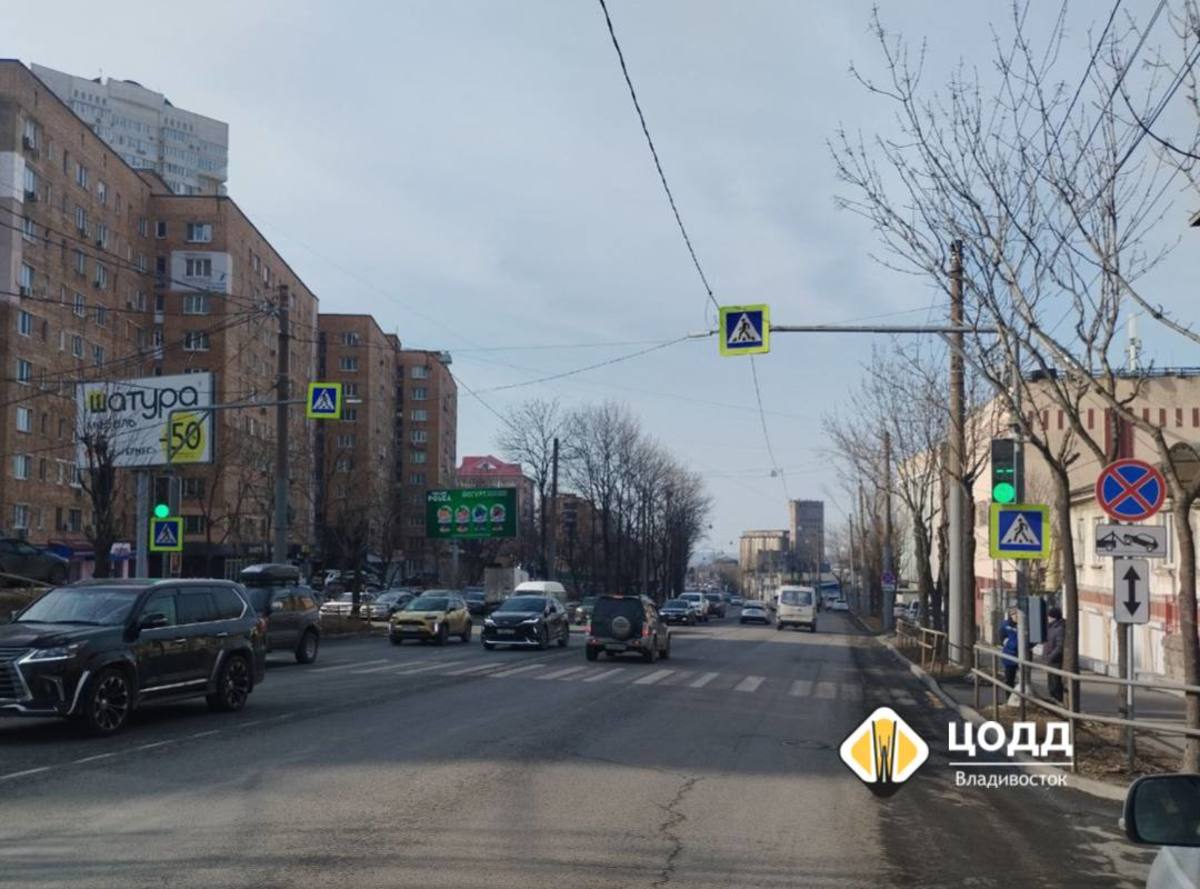ЦОДД Владивостока сообщает, что теперь стал регулируемым пешеходный переход по адресу: Народный проспект, 11-б – рядом с ТЦ «Гермес» завершили подключение нового светофора.