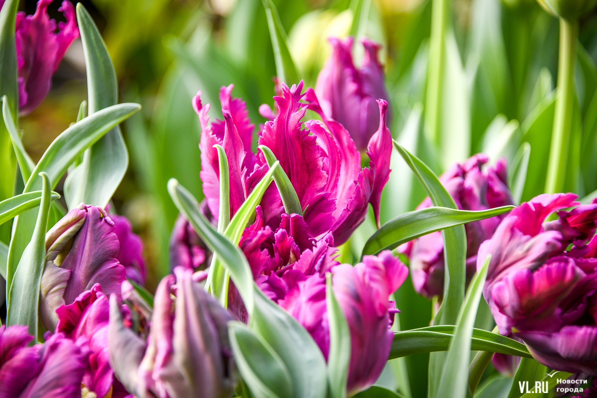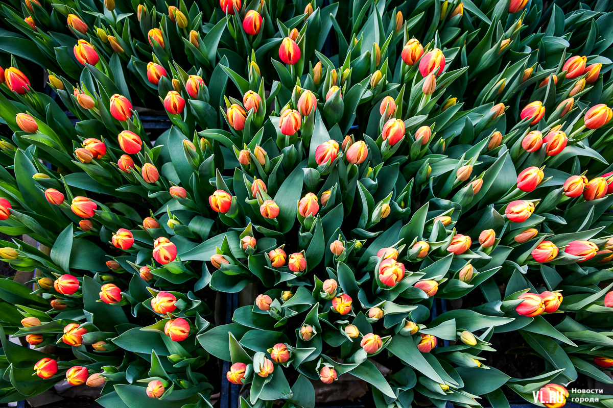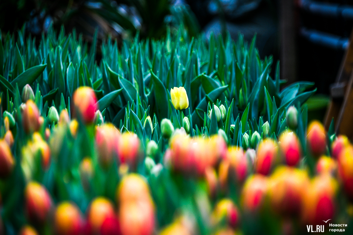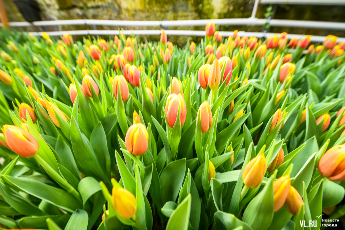 Около 9 тысяч тюльпанов заложил Ботанический сад-институт ДВО РАН на хранение в преддверии 8 марта. От 3 до 5 тысяч цветков изначально планировали продать горожанам по предварительным заявкам, и все они уже разошлись – сейчас цветы срезают и готовят для будущих букетов. С луковицей, срезанные, раскрывшиеся и нет, экзотичные экземпляры и привычные бутоны белого, алого и розового оттенков – главные «женские» цветы радуют посетителей на выставке в оранжерее, а некоторые пока ещё томятся в холодильных установках, спрятанные в бумагу.