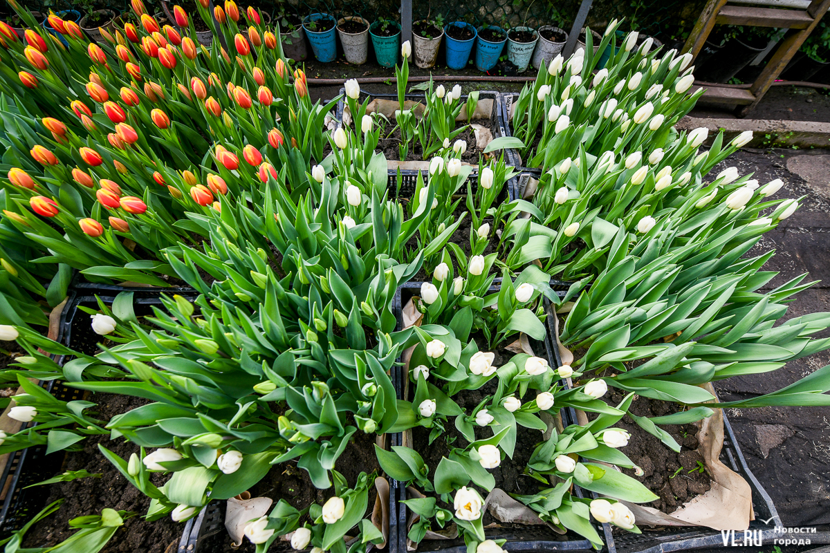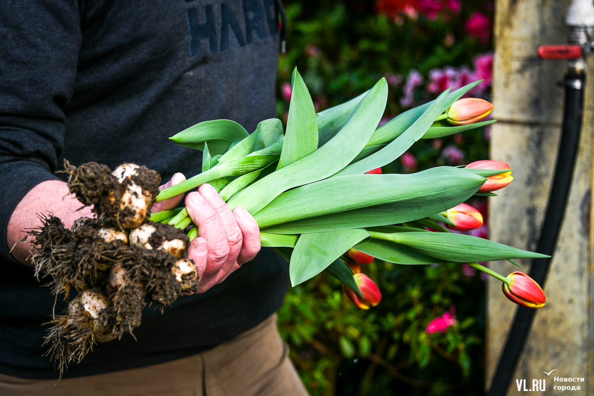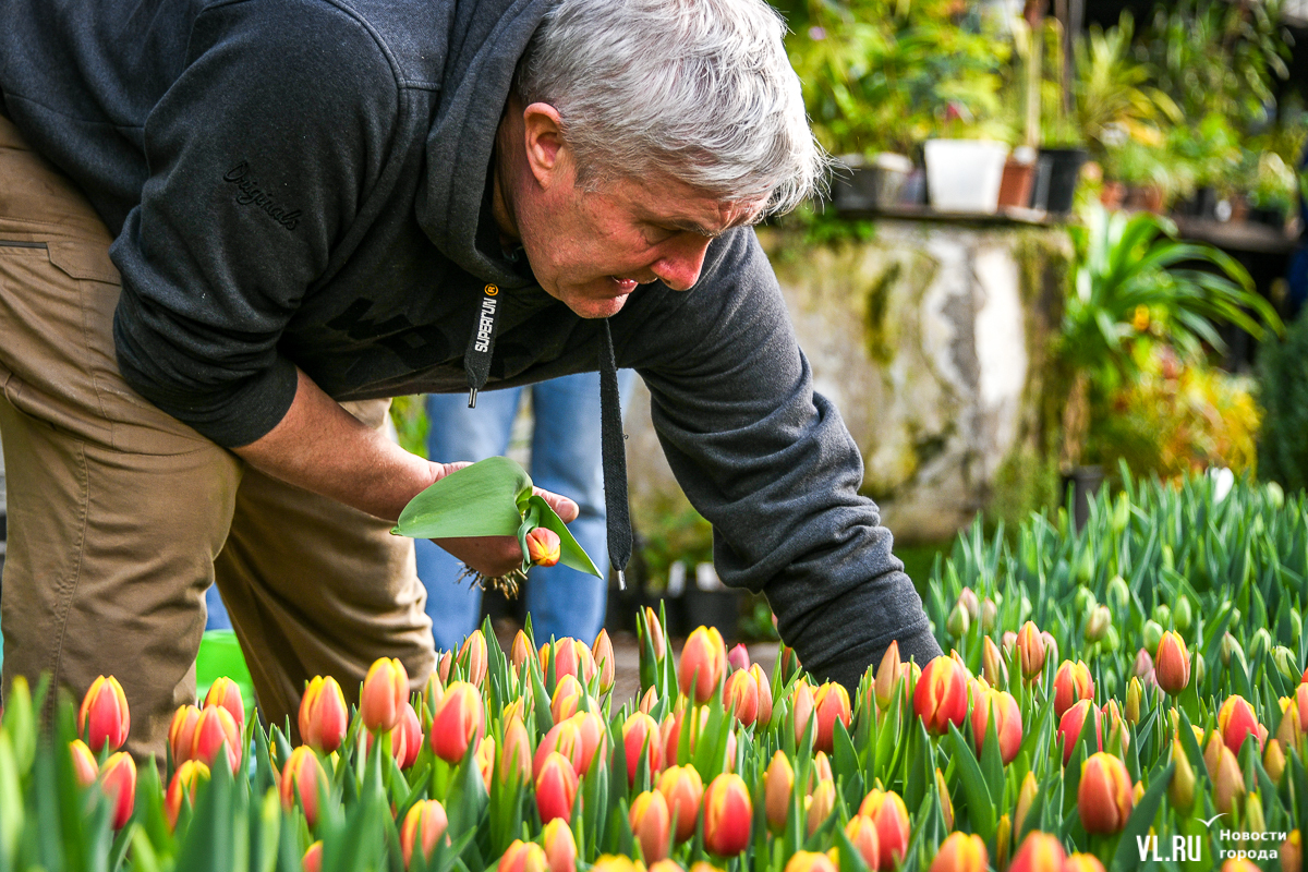 «Луковицы мы, как и все жители холодных стран, закупаем на цветочных аукционах от поставщиков тех стран, где нет морозной зимы. У нас есть довольно затейливые и совсем не массовые сорта, которые в промышленных теплицах не выращиваются. Тюльпаны берут цветочные салоны, потому что у нас очень свежий цветок, долго стоит. Обращаются к нам и любители цветов: один заказчик ходит много лет и покупает из всех сортов, что у нас есть, по одному цветку. Получается большой и очень яркий букет», – делится Ирина Крестова, научный сотрудник Ботанического сада-института ДВО РАН.